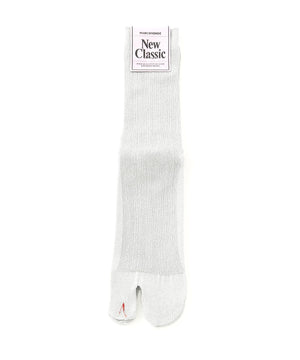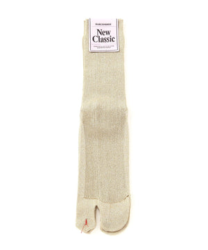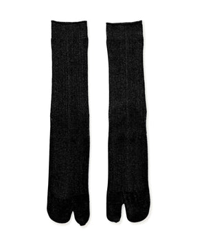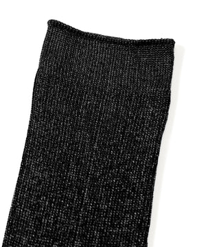 1x1リブのグリッターソックスは肌触りの良いラメ糸を使用し、柔らかくしなやかな履き心地◎カジュアルになりすぎない大人の為のタビソックスです。