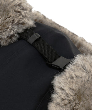 エクスペディション用の防寒ギアをモデルにした、寒冷地用のキャップ。表地には防水透湿性に優れたリサイクルナイロンオックス生地を採用。耳当て部分のリサイクルポリエステルのファーは、リアルファーのような色合いと肌触り。毛足が長く、デッドエアをため込み保温性を高めています。縫い目はシームシーリング加工済み。耳当てはテープバックルで頭部に巻き上げることも可能。UVプロテクト(UPF50+、紫外線カット率95%以上)機能付き。ウインターキャンプから冬季登山まで、さまざまな冬のアクティビティに重宝するアイテムです。