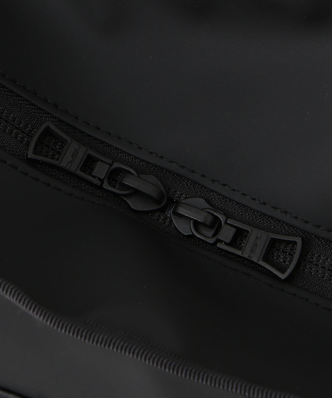 マット調のゴムライクな雰囲気が特徴的な素材となります。付属生地は、通常ナイロンの約 5 倍の摩耗・引き裂き強度・耐久性を持つ INVISTA 社の 1680d コーデュラバリステック ナイロンを使用し、裏面に PVC 加工を施すことで更なる強度と防水性を向上させています。