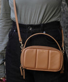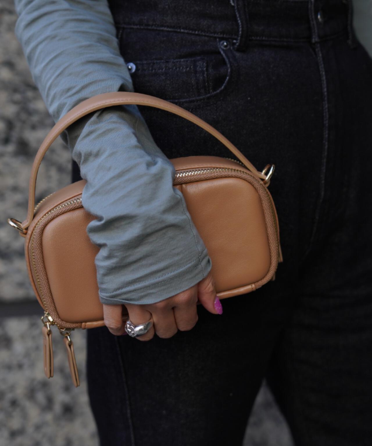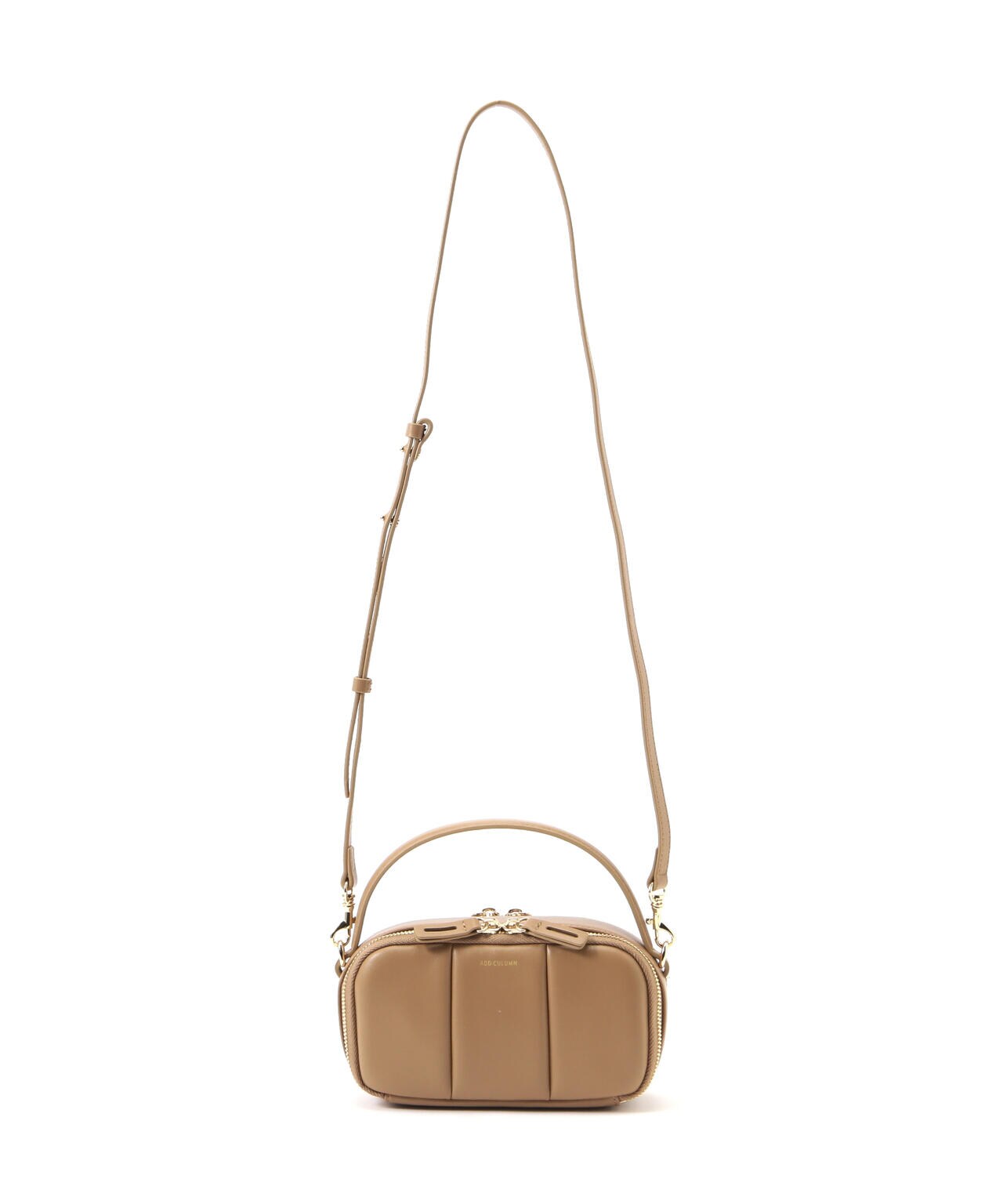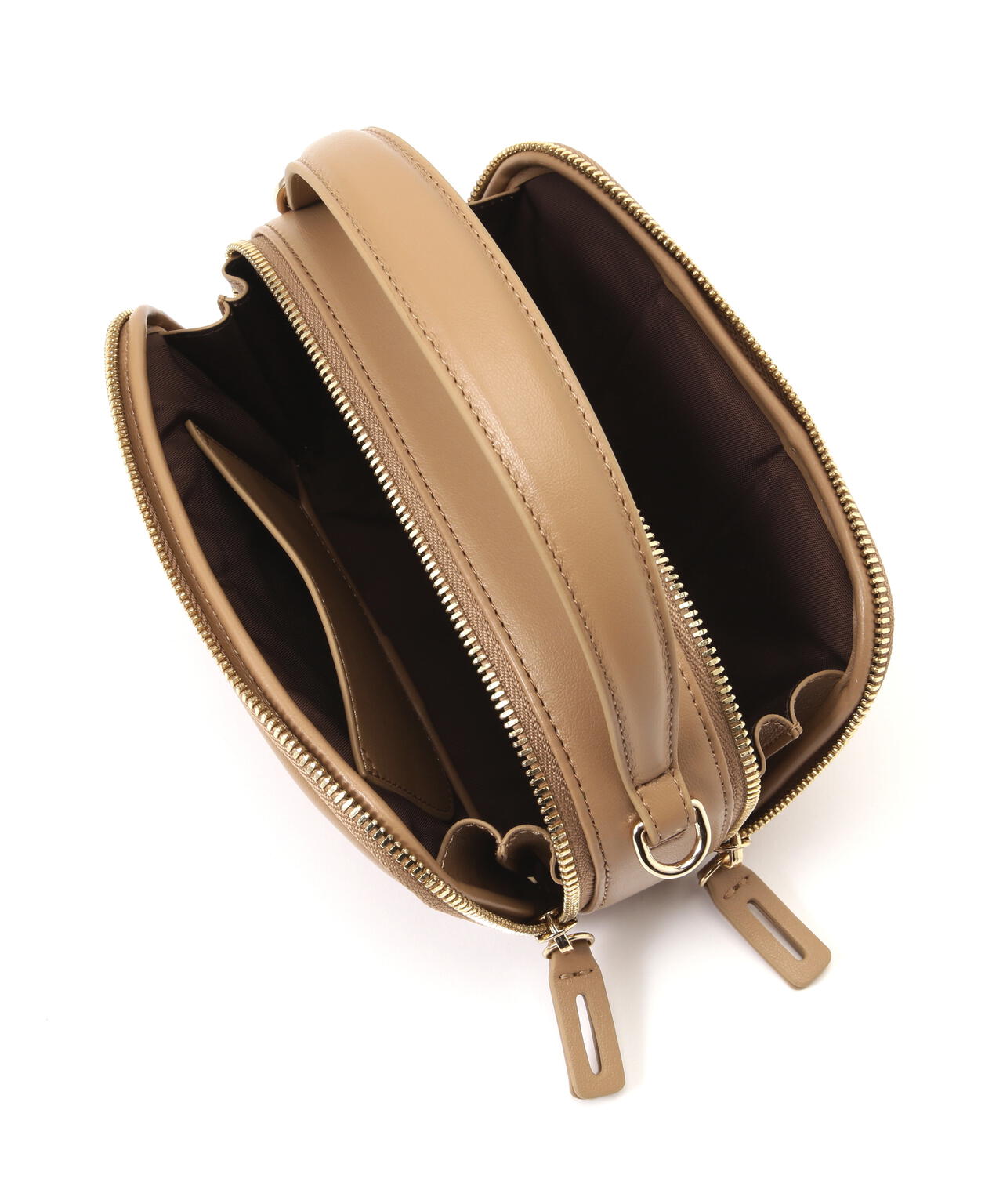 ショルダーストラップ付きでハンドバッグと斜め掛けも可能な2WAY仕様。2部屋構造で荷物の整理に便利です。