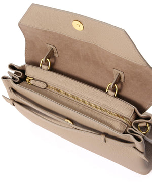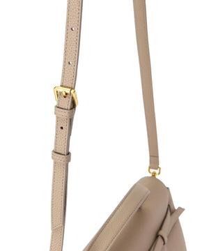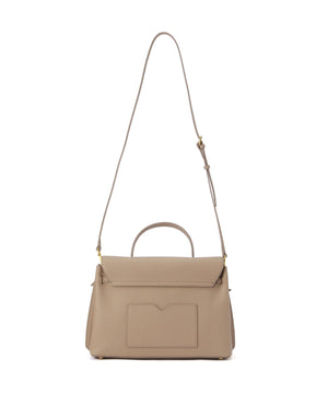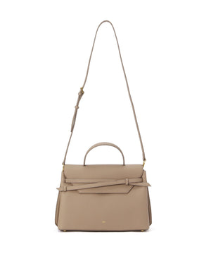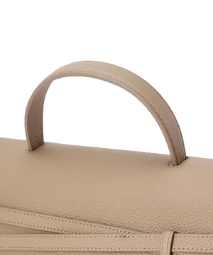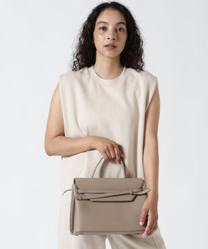 クロスリボンのクラシックで上品なデザインが魅力の<MIMI>シリーズから<GRAND>をリリース。厳選した柔らかいシボレザーは傷が目立ちにくいのでデイリーにご使用いただけます。タブレット端末やペットボトルなどもが収納できるサイズ感は利便性に富んだアイテムとなっています。取り外し可能なストラップ付きでクロスボディとしても使用できます。