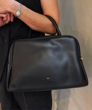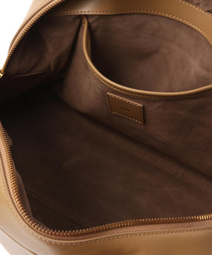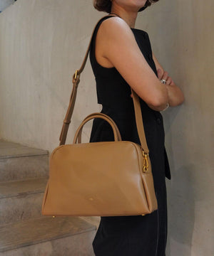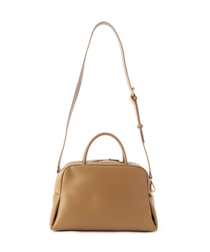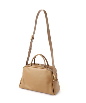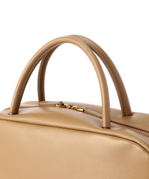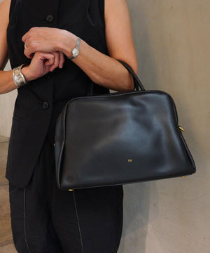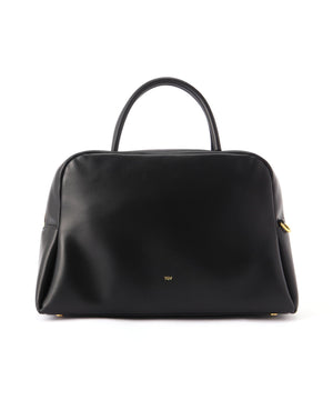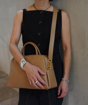 くびれたフォルムとミニマルなデザインが魅力な<PETAL>シリーズから大き目サイズのボストンバッグをリリース。やさしい光沢感のあるスムースカウレザーを使用。AW仕様で起毛裏地になっています。iPadが入る大きさで、財布、スマートフォン、ポーチ、折り畳み傘やペットボトルなど必需品プラスアルファがしっかりと収納できるサイズ感。様々なスタイルやシーンに馴染む、上品なシルエットとひと癖あるデザインがポイント。