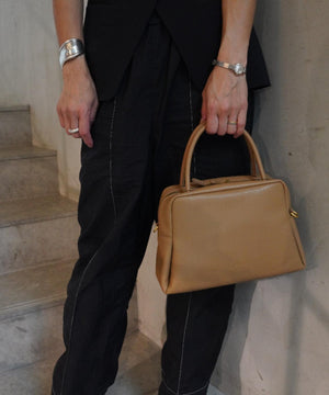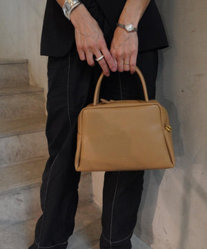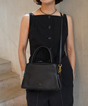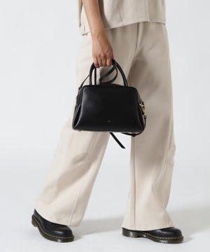 くびれたフォルムとミニマルなデザインが魅力な<PETAL>シリーズのボストンバッグ。やさしい光沢感のあるスムースカウレザーを使用。AW仕様で起毛裏地になっています。着脱可能なショルダー付きでショルダーとしても、ハンドバッグとしても使用できます。財布、スマートフォン、ポーチなど必需品がしっかりと収納できるサイズ感。様々なスタイルやシーンに馴染む、上品なシルエットとひと癖あるデザインがポイント。