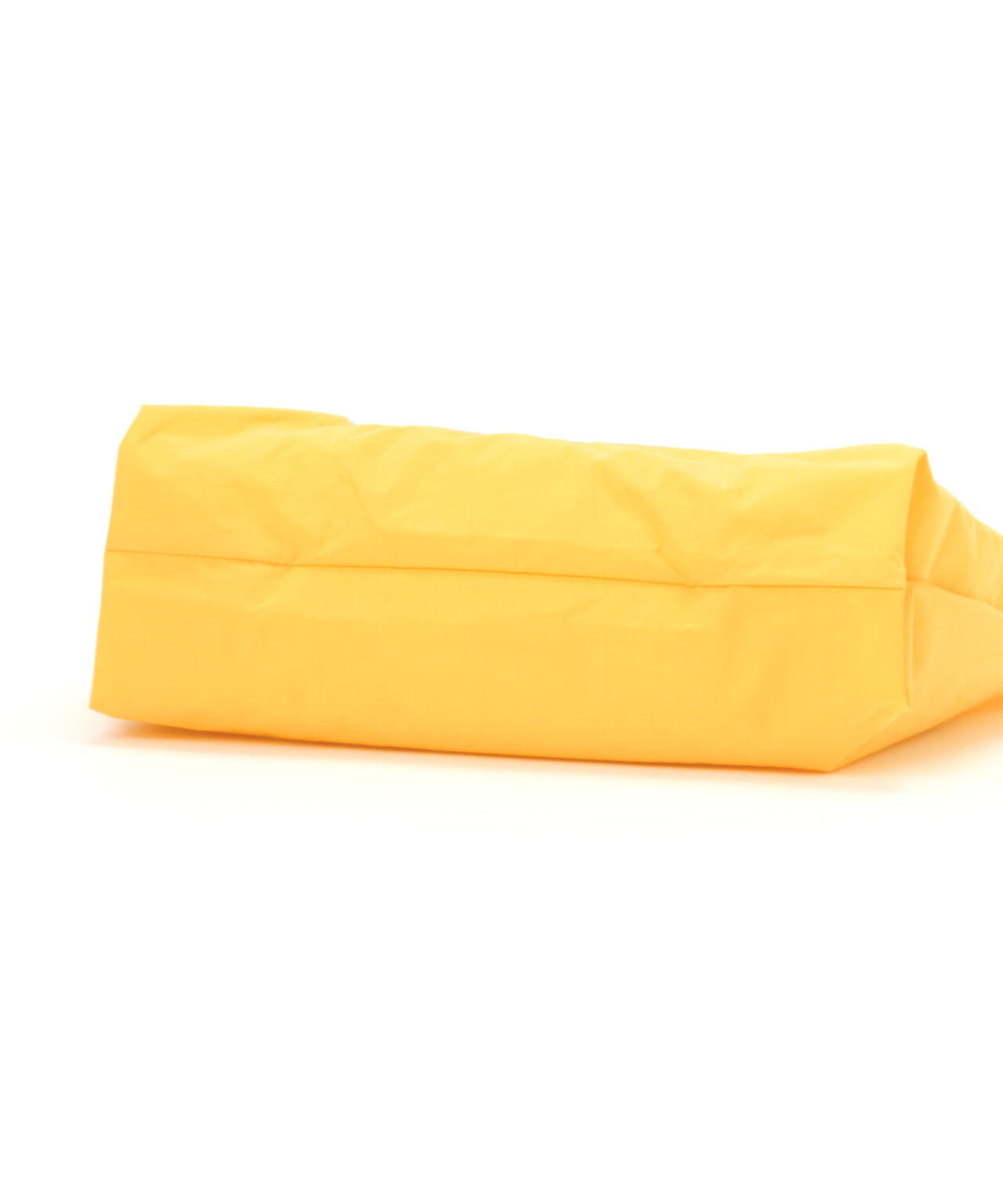 しっかりとしたポリエステル素材のバッグ。ハリと厚みのある素材で軽さと安定感があります。