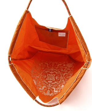 しっかりとしたポリエステル素材のバッグ。ハリと厚みのある素材で軽さと安定感があります。