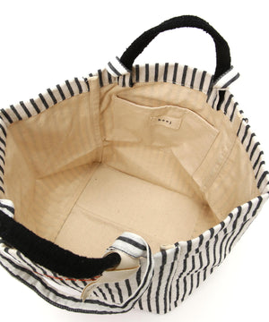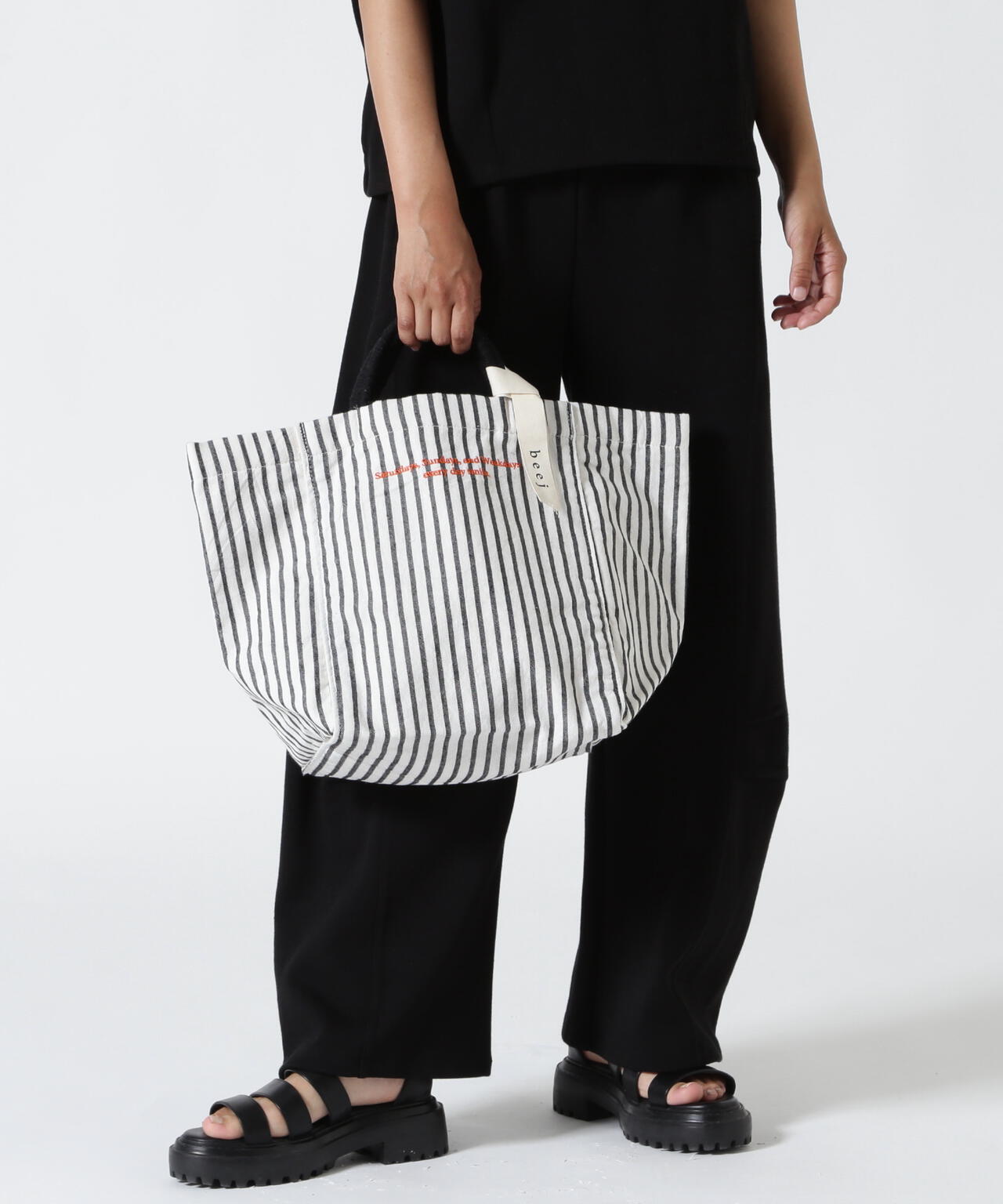 ストライプの生地のさりげないオレンジのロゴがかわいいBAGです。