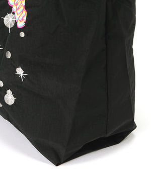 しっかりとしたポリエステル素材のバッグ。ハリと厚みのある素材で軽さと安定感があります。