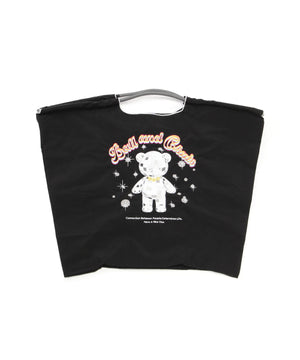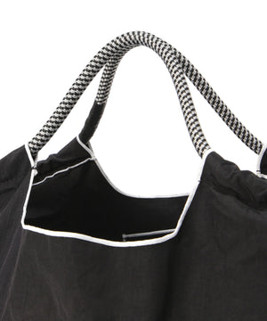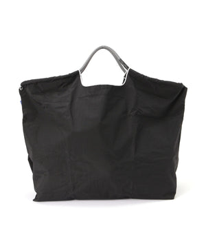しっかりとしたポリエステル素材のバッグ。ハリと厚みのある素材で軽さと安定感があります。