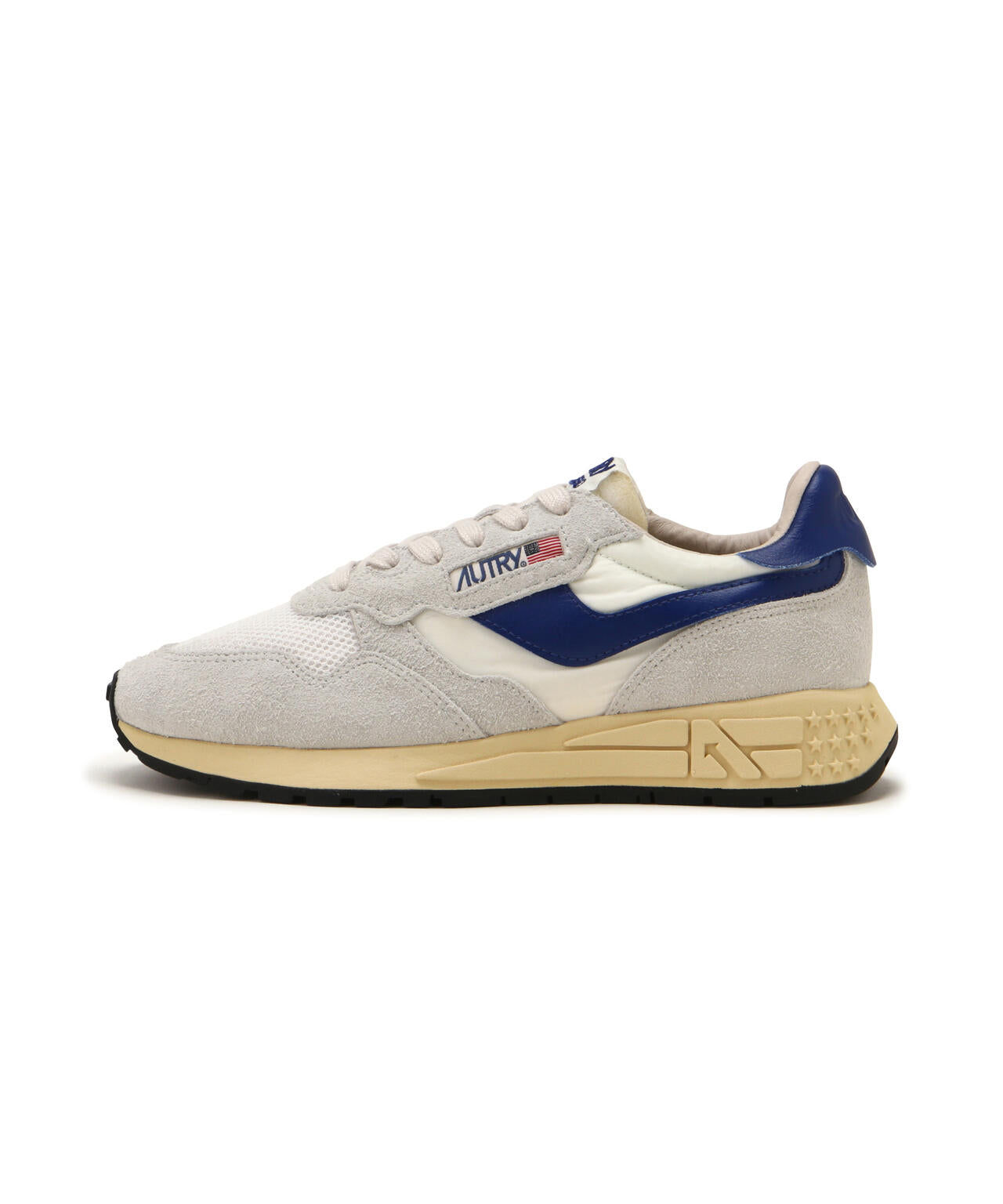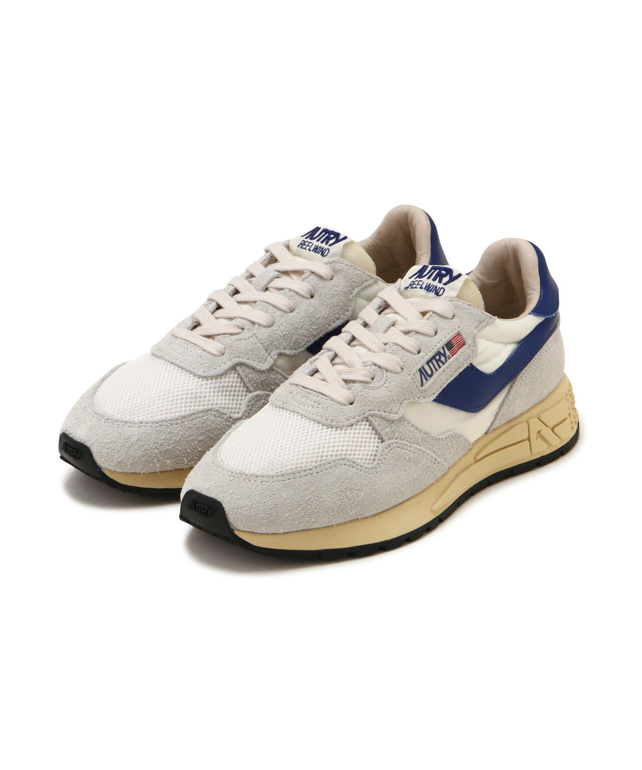 革新的で軽く、非常に柔軟なREELWINDはランニングスニーカーからインスピレーションを得ており、ホワイトのスエードとナイロンをミックスし、サイドパネルはブルーのレザーで仕上げている。ダイナミックなライフスタイルのためにデザインされたこのスニーカーは、細身のシルエットと、自由な動きを可能にするパフォーマンス構造が特徴。エンボス加工を施したラバーソールは星柄とAUTRYのアローのロゴをモダンに再解釈しています。