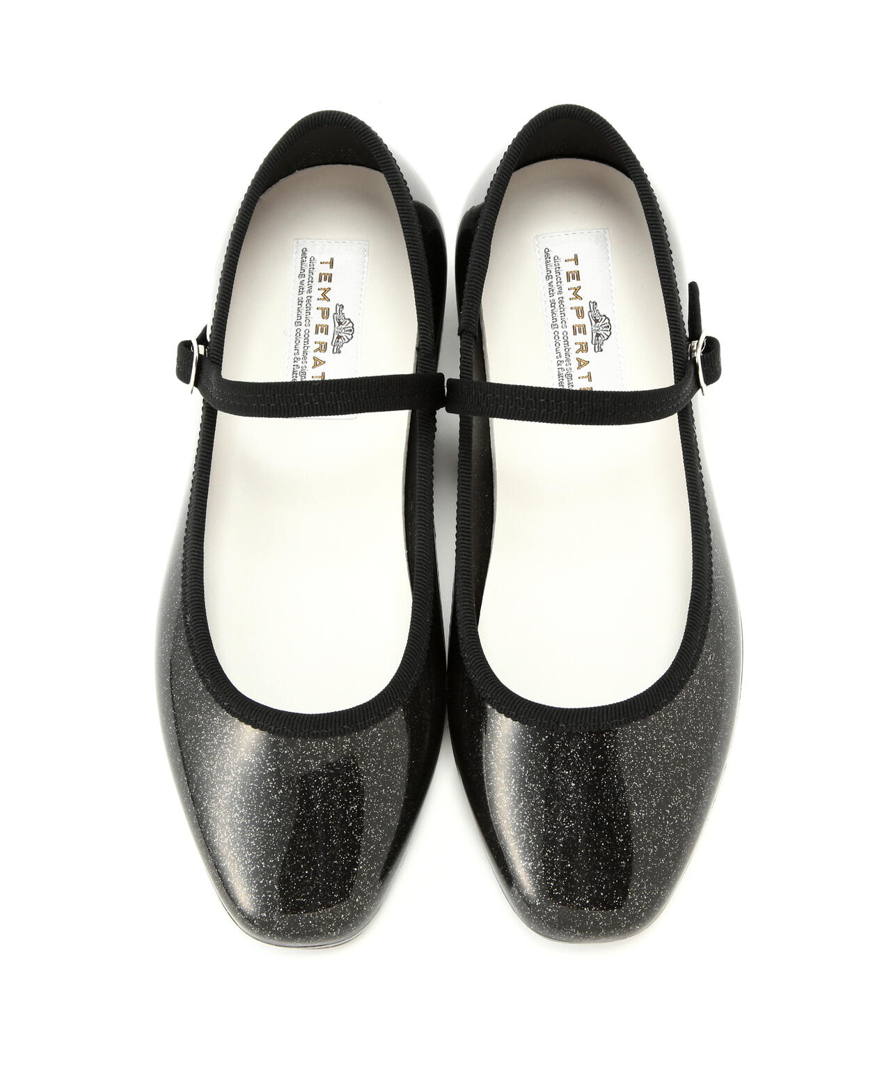 細かい粒子のグリッターを閉じ込めた、繊細で上品な輝きのパンプス。
