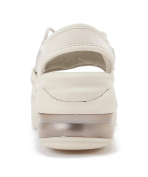 女性向けにデザインされたこのサンダルは、高さのあるプラットフォーム構造で、 レイヤードフォームミッドソールとMax Airクッショニングが快適な履き心地を提供。