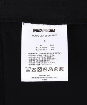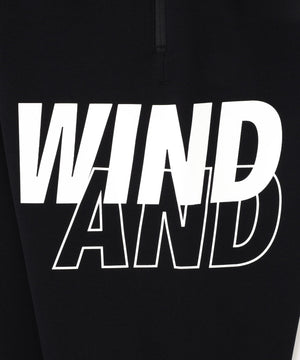 WIND AND SEAらしい存在感のあるグラフィックを、表裏にまたがるよう大胆に配したルーズフィットパンツ。