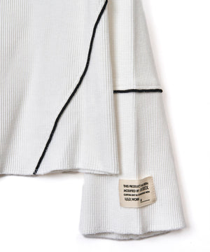 凸凹感のあるワッフルでさらっと着心地も良く、シンプルに見えすぎないのも嬉しい。