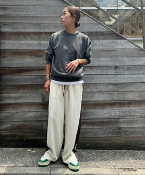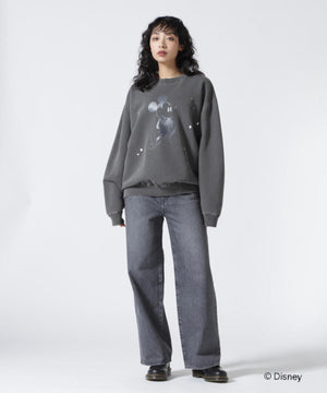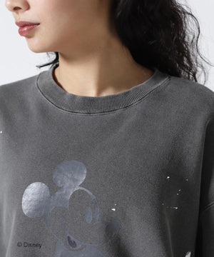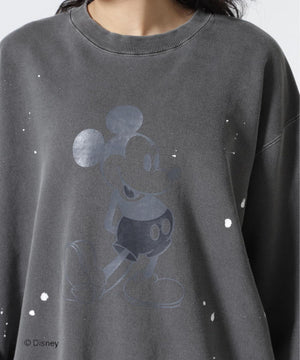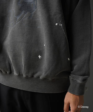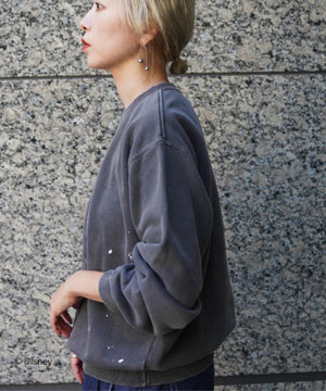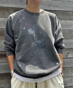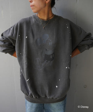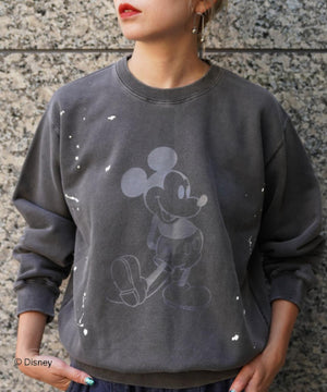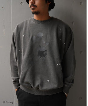 ペイントやピグメント加工がヴィンテージ感漂うミッキースウェット。