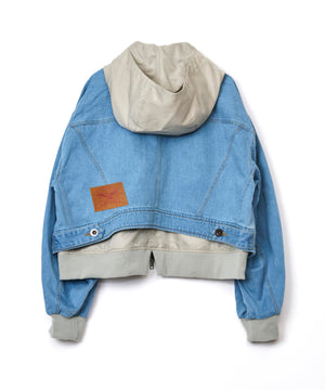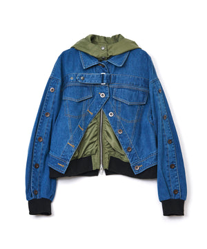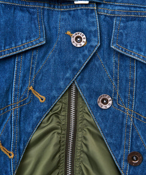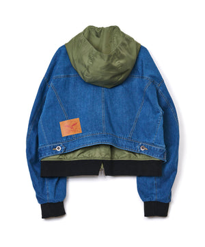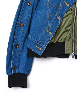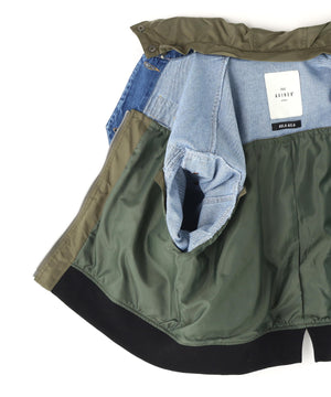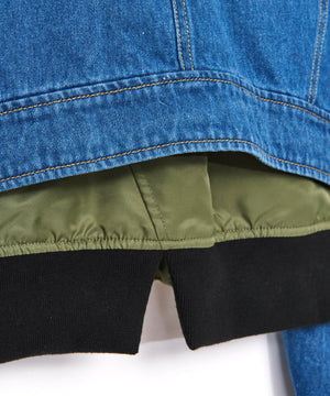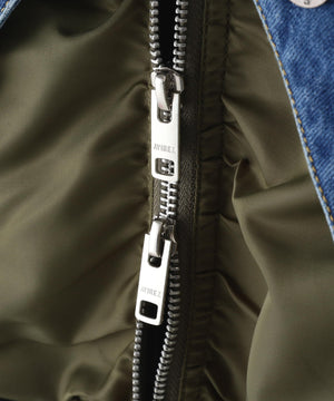デニムとナイロンがコンビネーションされた、N-2B風ブルゾン。