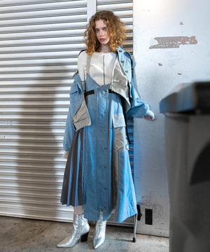 前中心のファスナーは逆開、バストラインのベルトは開けた状態でも留められるため着こなしの幅も広がる。