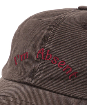 シーズンコンセプト「I’m Absent」の刺繍を添えたメッセージキャップ。まるで長く愛用してきたような、ヴィンテージライクな風合いが魅力的。