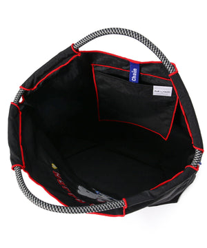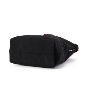 しっかりとしたポリエステル素材のバッグ。ハリと厚みのある素材で軽さと安定感があります。