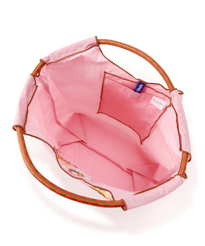 しっかりとしたポリエステル素材のバッグ。ハリと厚みのある素材で軽さと安定感があります。