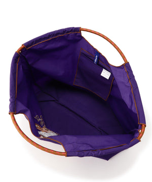 しっかりとしたポリエステル素材のバッグ。ハリと厚みのある素材で軽さと安定感があります。