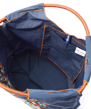 しっかりとしたポリエステル素材のバッグ。ハリと厚みのある素材で軽さと安定感があります。