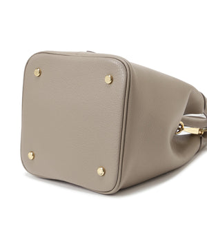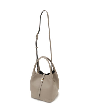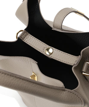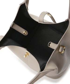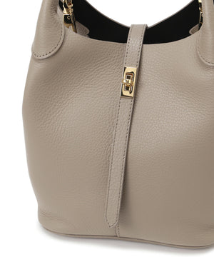 ゴールドの金具やターンロック付きのベルトがアクセントになり、コーディネートを上品な印象に仕上げてくれます。