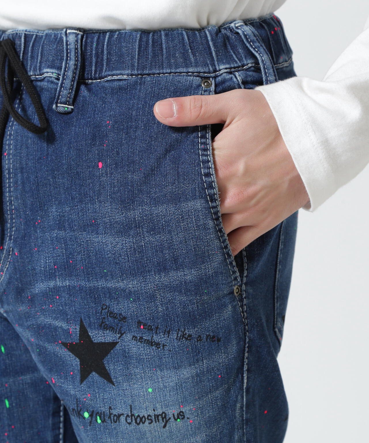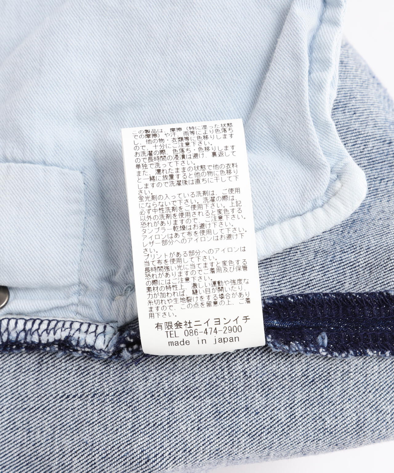 国内有数の“デニムの産地”である岡山県倉敷市児島で、生産されています。デニム生地は世界各地から厳選し、日本の生地とは発色の違うトルコ産生地をオーダーメイドして使用しています。30年間の技術を全て注ぎ込んだ、“遊び心があり、個性的で、存在感のある”新しい感覚のボトムス作りをコンセプトとしています。