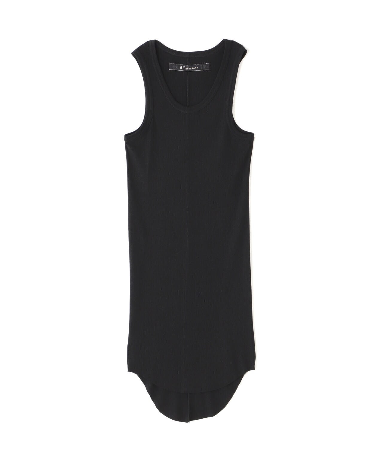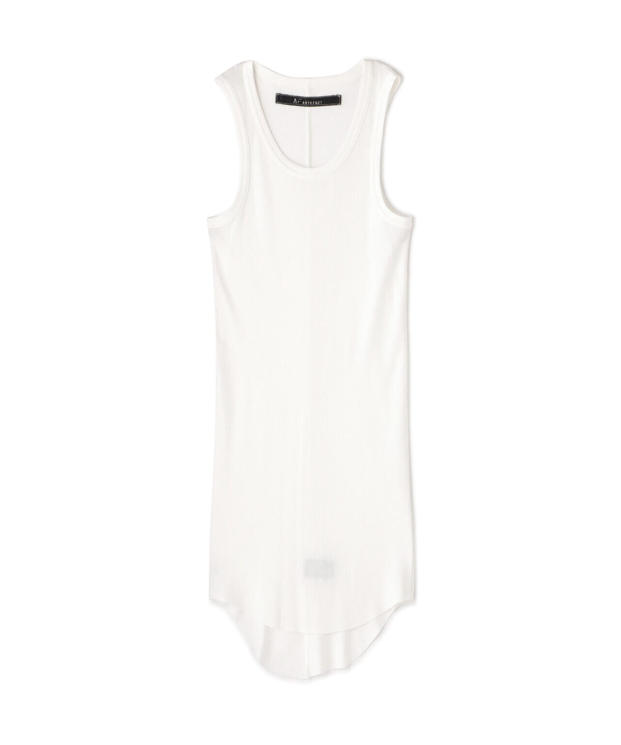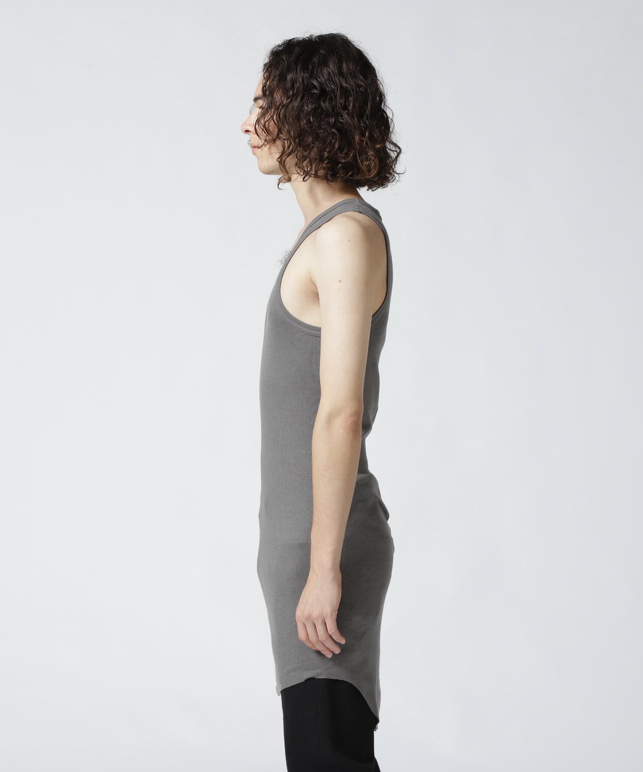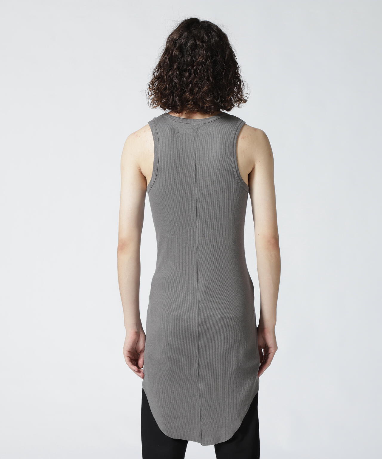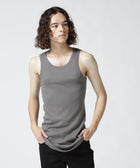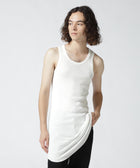 フィット感のあるシルエットに裾のラウンドしたロング丈仕様のタンクトップ。