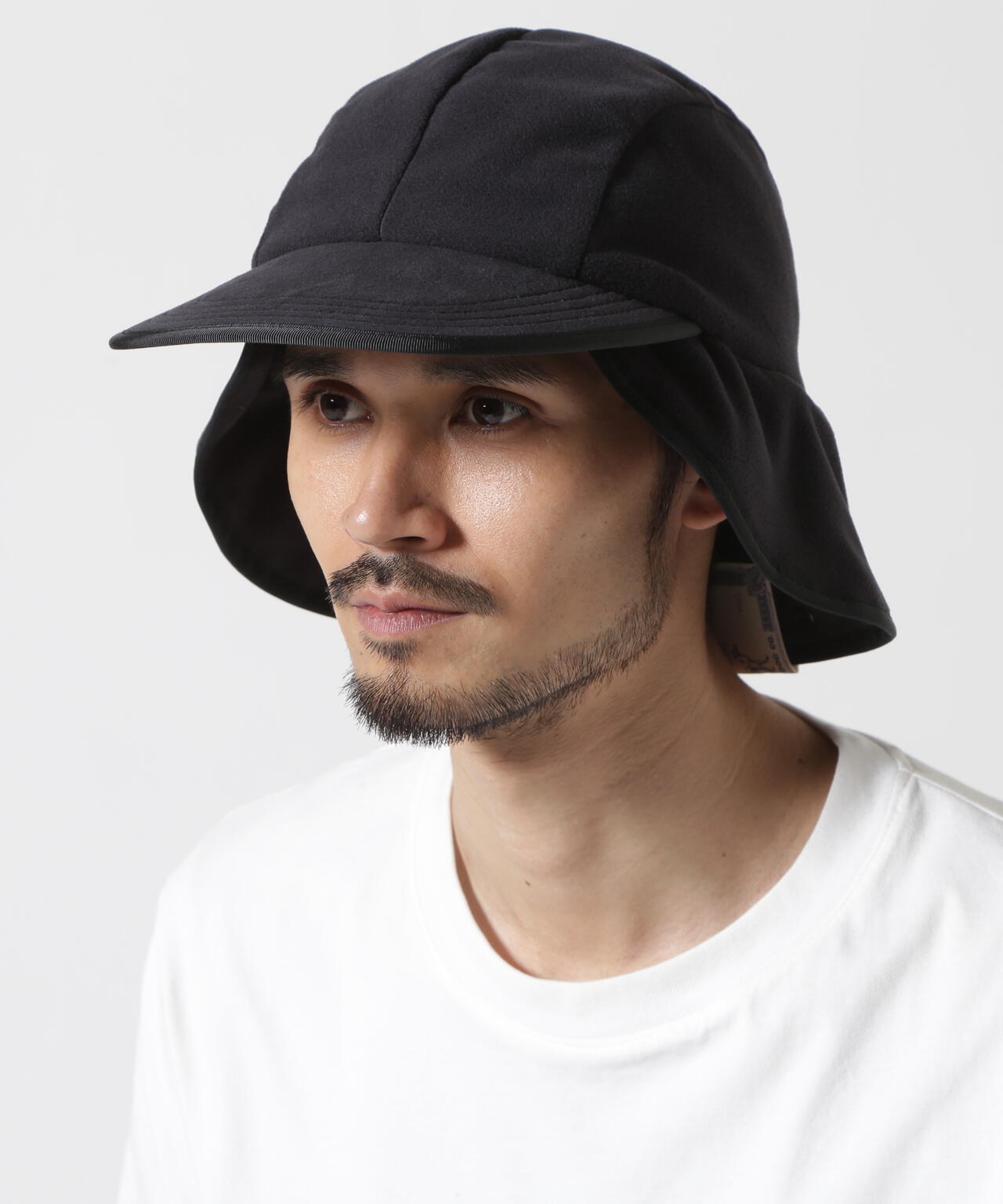 ボタンで折り畳みができるシコロがついているので耳と首を保温することが可能で、ブリム裏はナイロン素材の撥水生地が使用されたデザインに仕上げています。