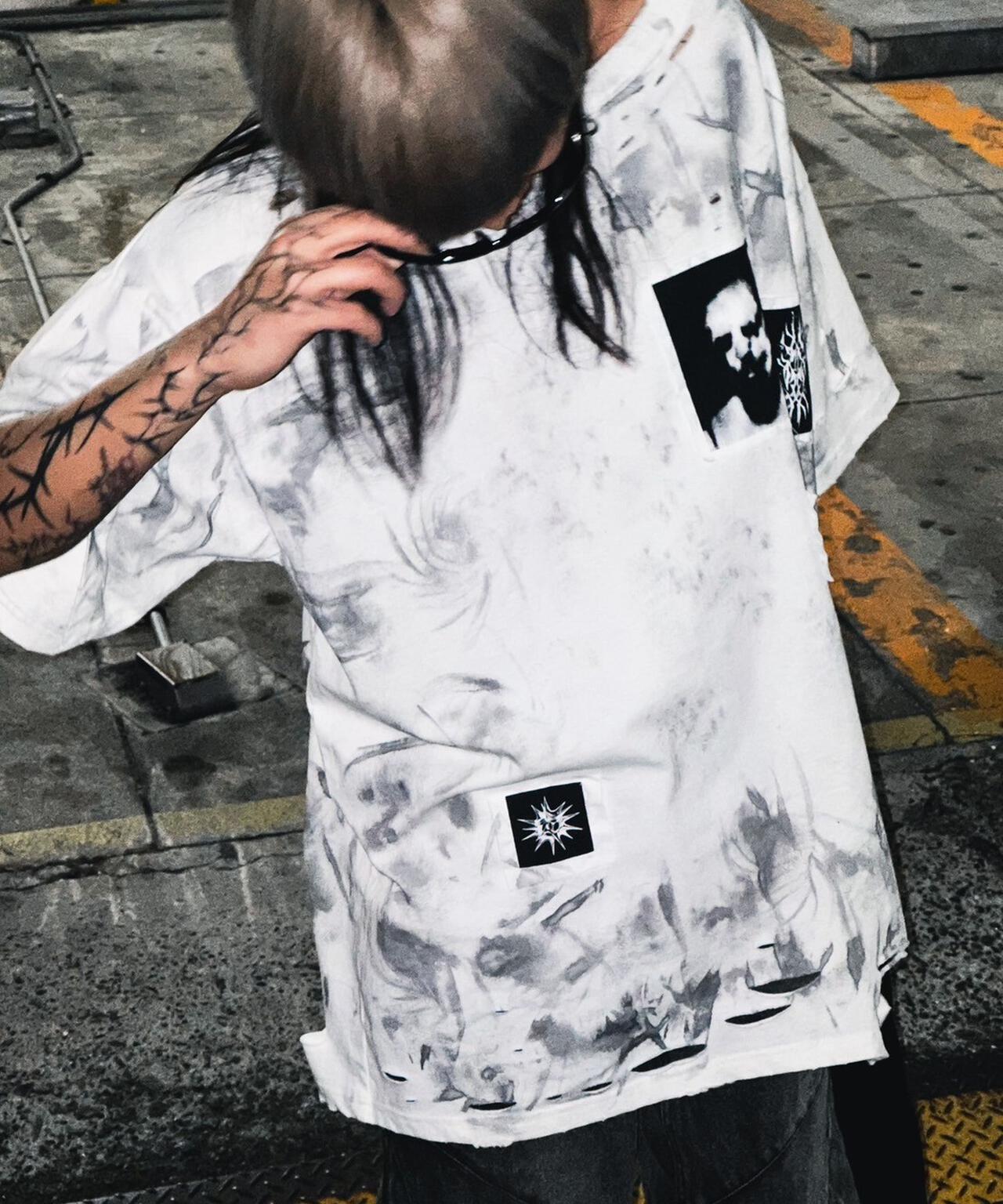 完全オリジナルのフォトパッチを制作して配置したオーバーサイズのTシャツになります。