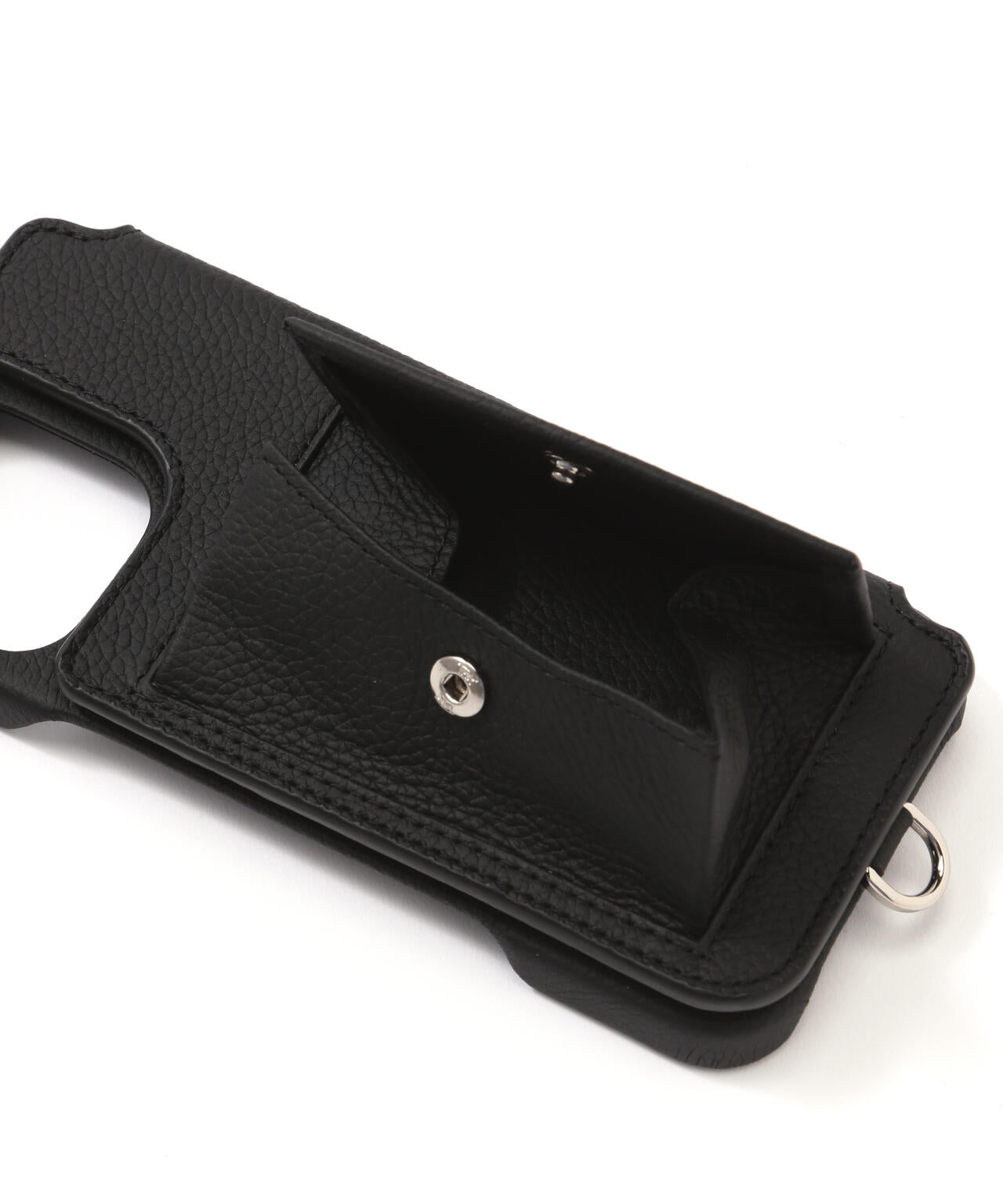 内側に2段のカードスリット、収納ポケット、 外側に小銭入れを配しお財布としての機能を備えた便利なアイテム。