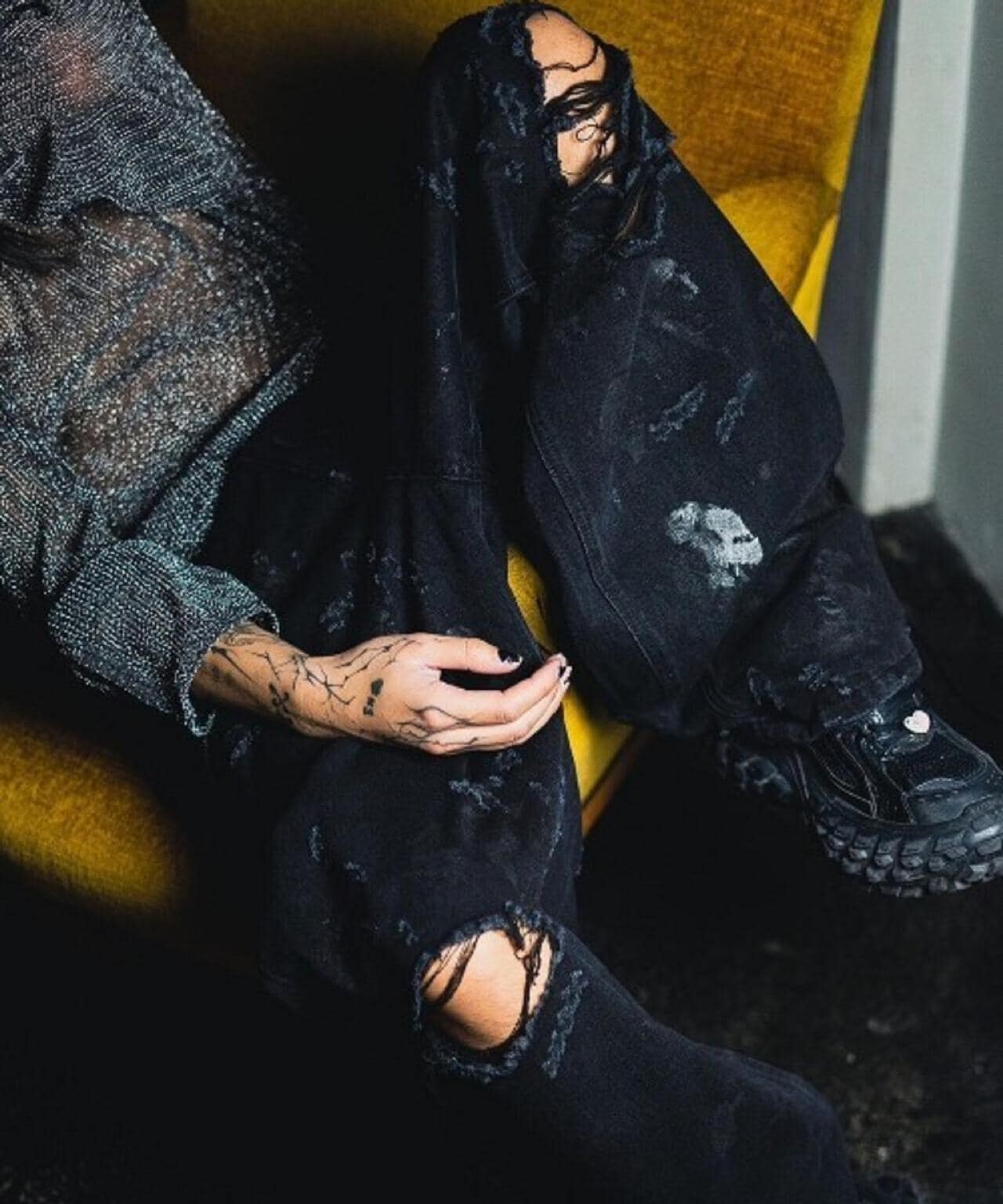オーバーサイズデニムをベースに部分的にコーティングを施し、ダメージや加工を繰り返す事で、ヴィンテージの様な風合いに仕上げています。