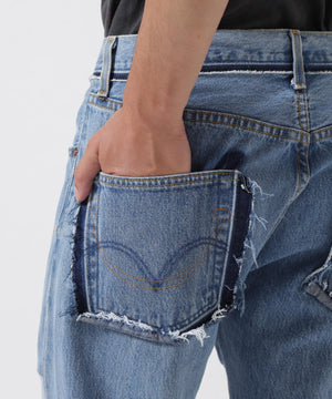 ヴィンテージのデニムを解体・再構築したリメイクパンツ。