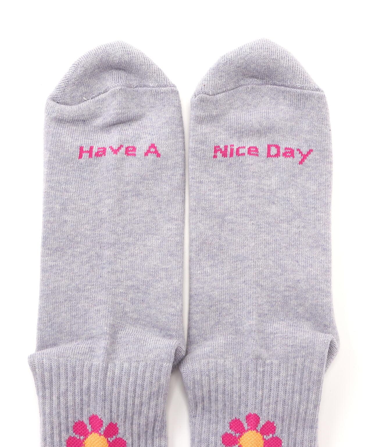 インパクトのあるお花がフロントとバックに施されたソックス。