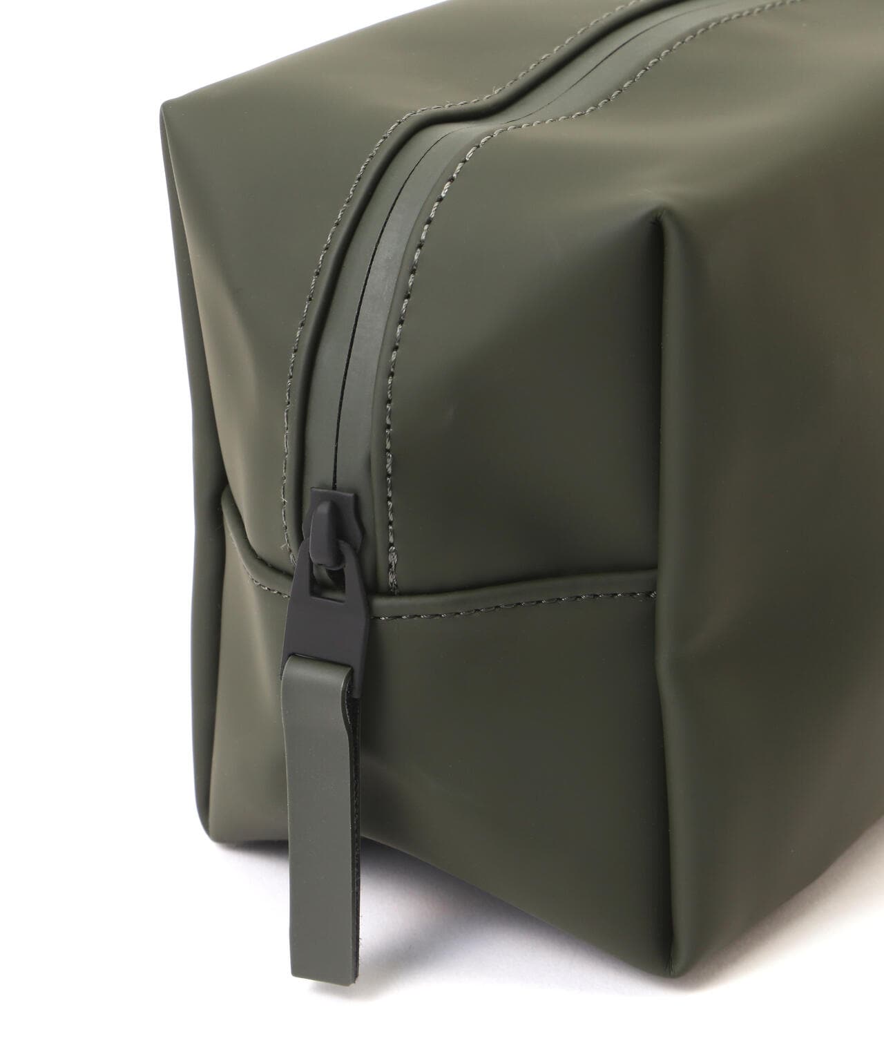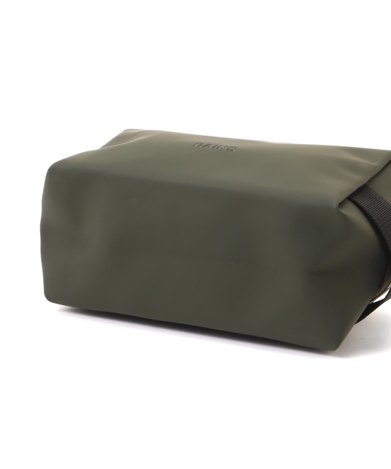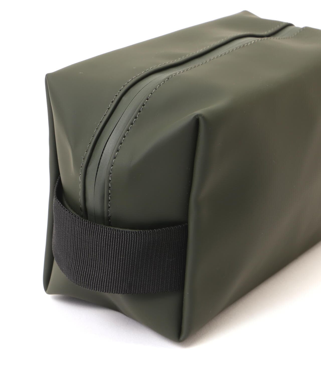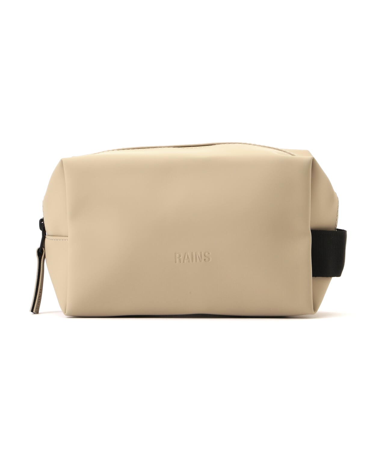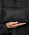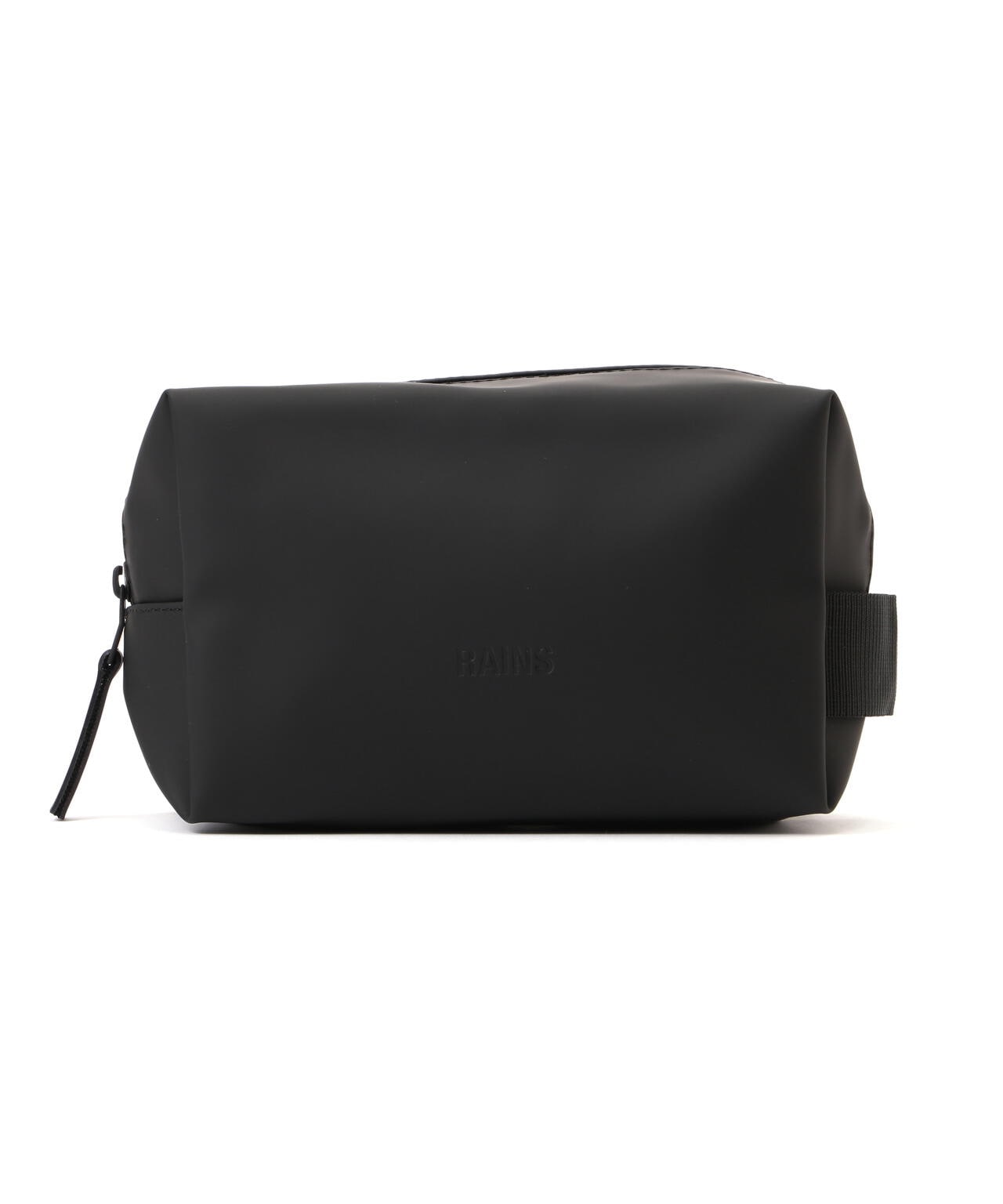 ウォッシュ バッグ スモールは、Rainsのシグネチャーであるウォータープルーフ加工を施したPUファブリックを使用。