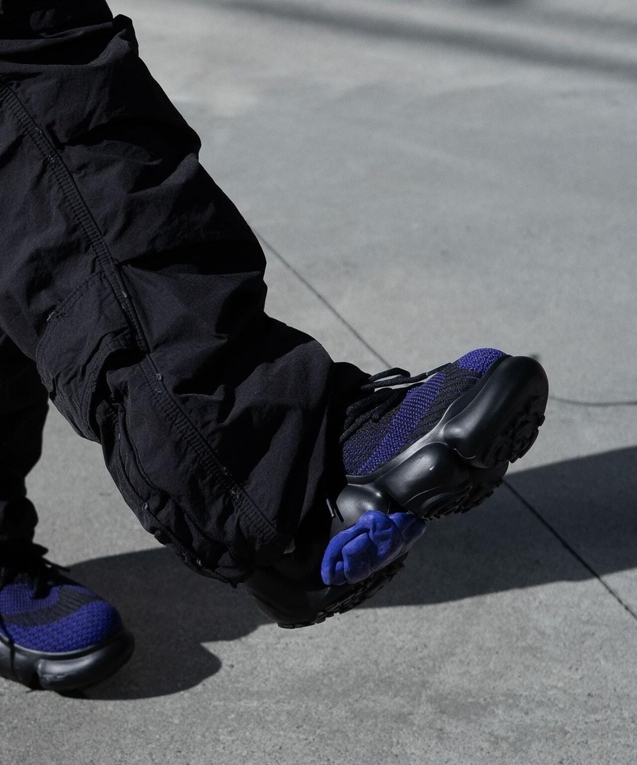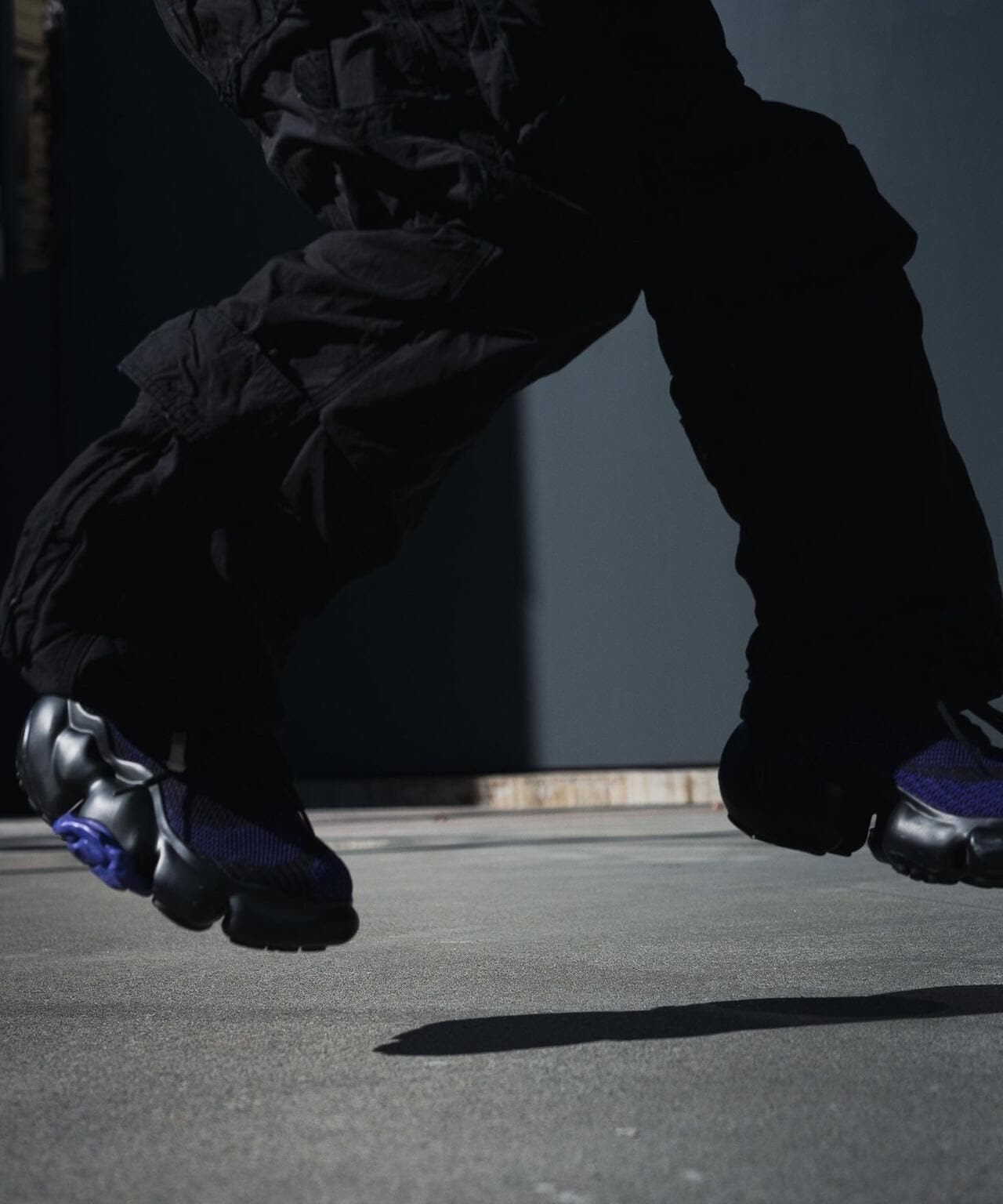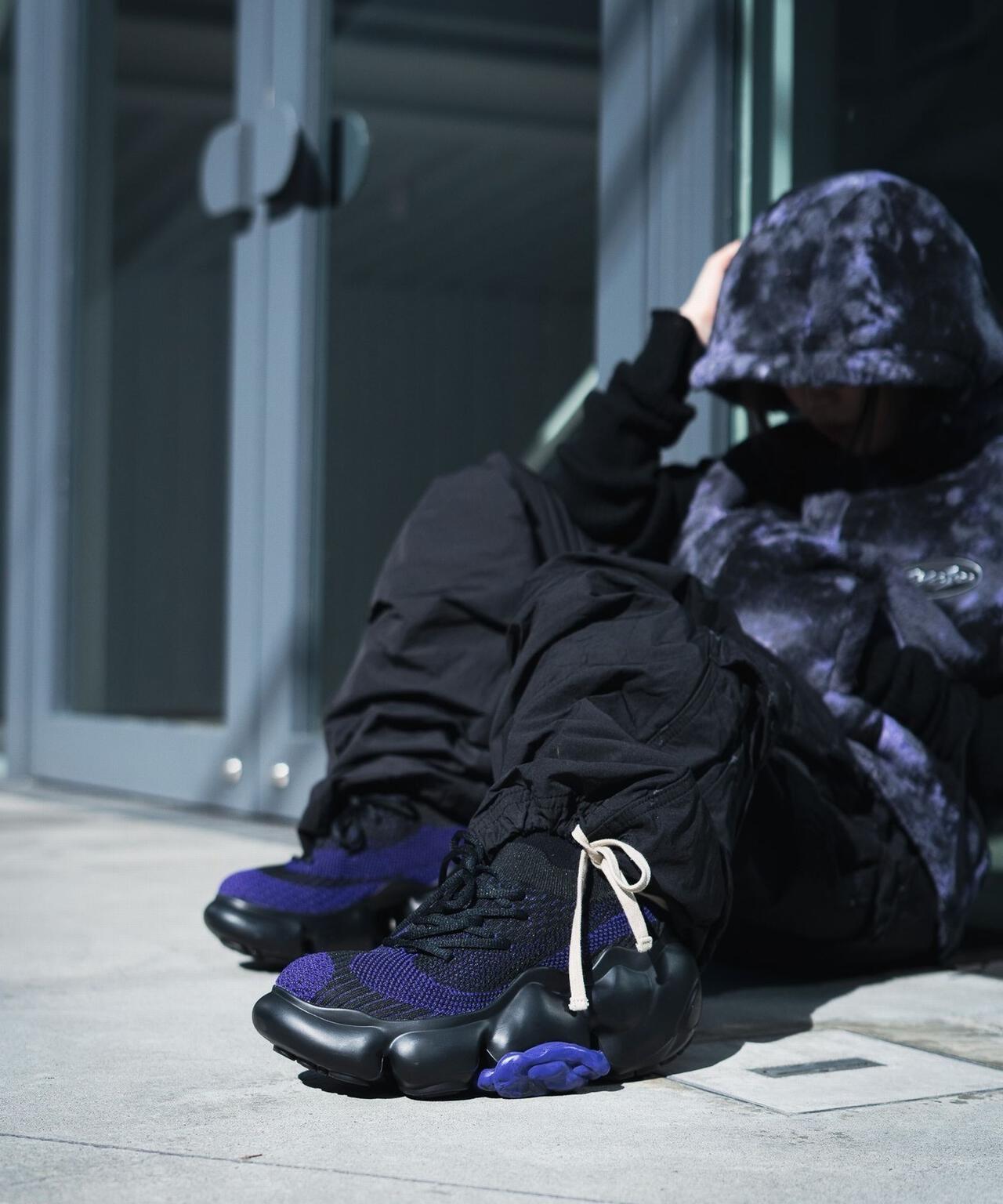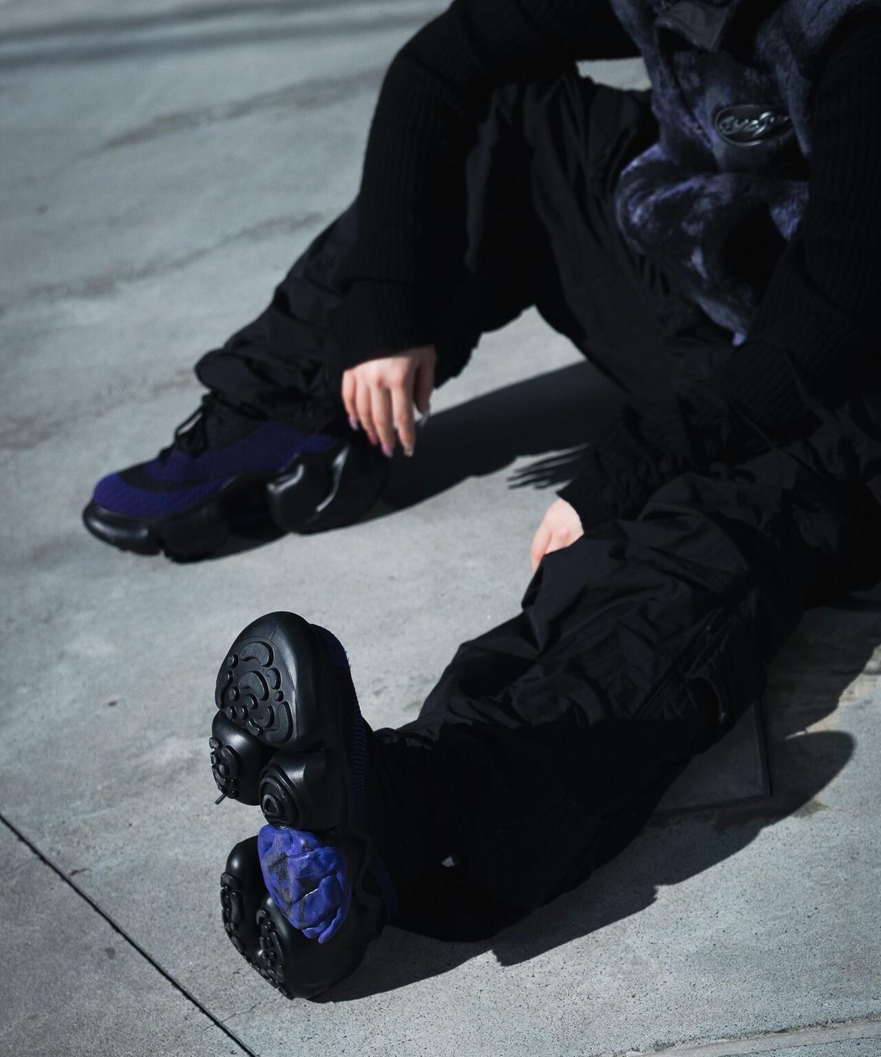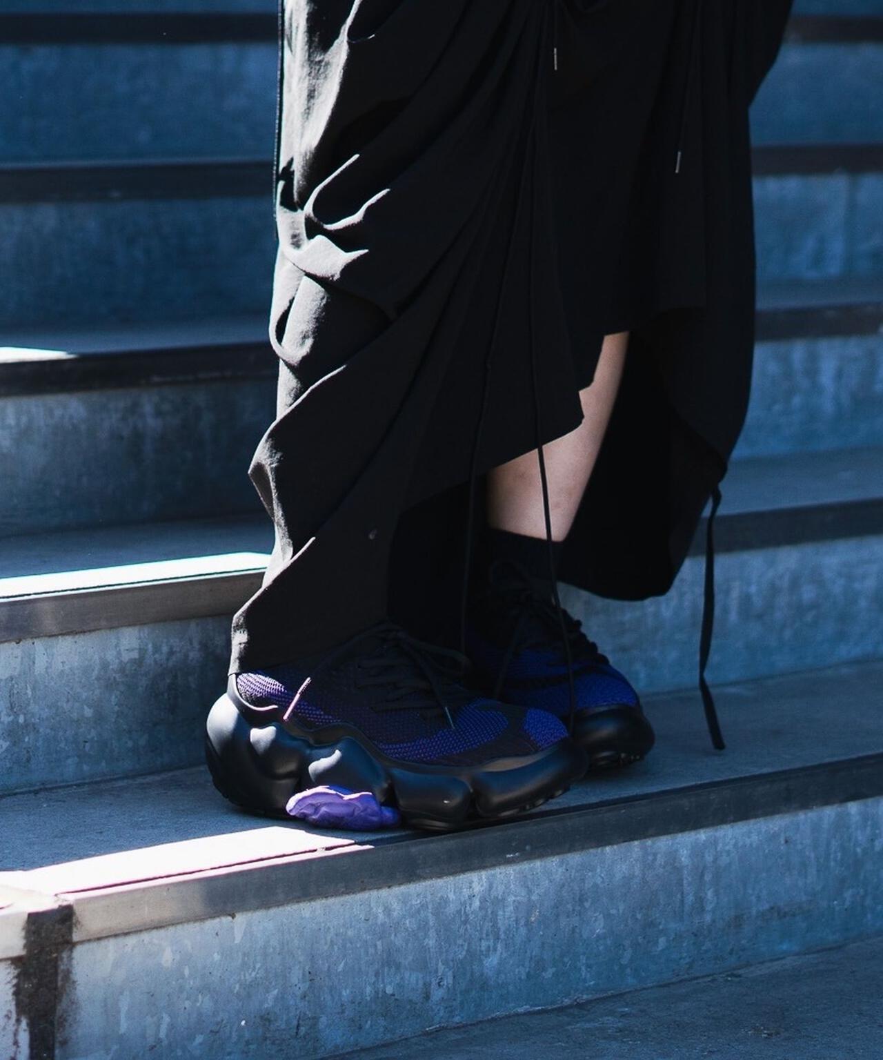 「人間と重力(地球)の関係に変化をもたらすこと」「人間と重力(地球)の接点であるアウトソールと地面を中心とした人間づくり」をテーマに、ボリュームのある特徴的なアウトソールを組み合わせたフットウェアを発表しています。