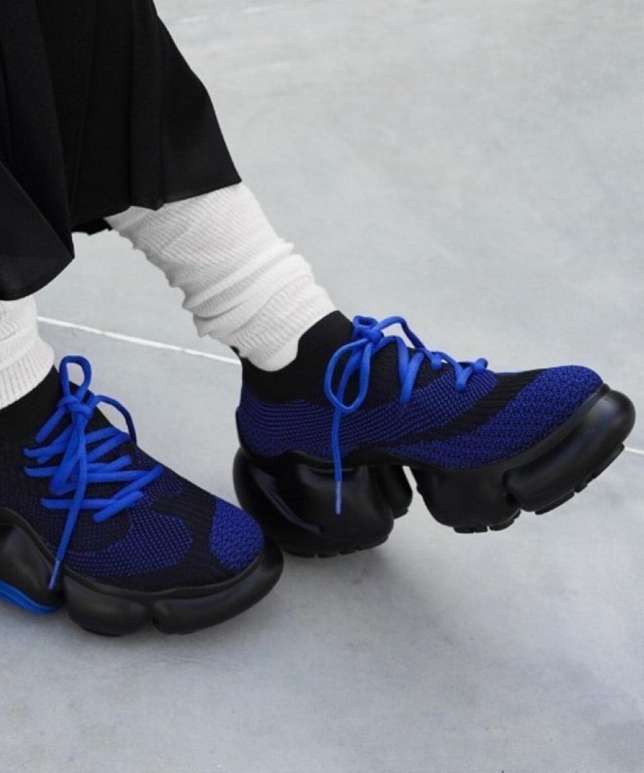 アッパーはボリュームのある靴底とは対照的に華奢な仕上がりとなっています。シャープなシェイプと、土踏まずに作ったくびれ、つま先からかかとにかけて緩やかな傾斜をつけることで既存のスニーカーにはない上品でスラっとしたスタイルを印象になります。