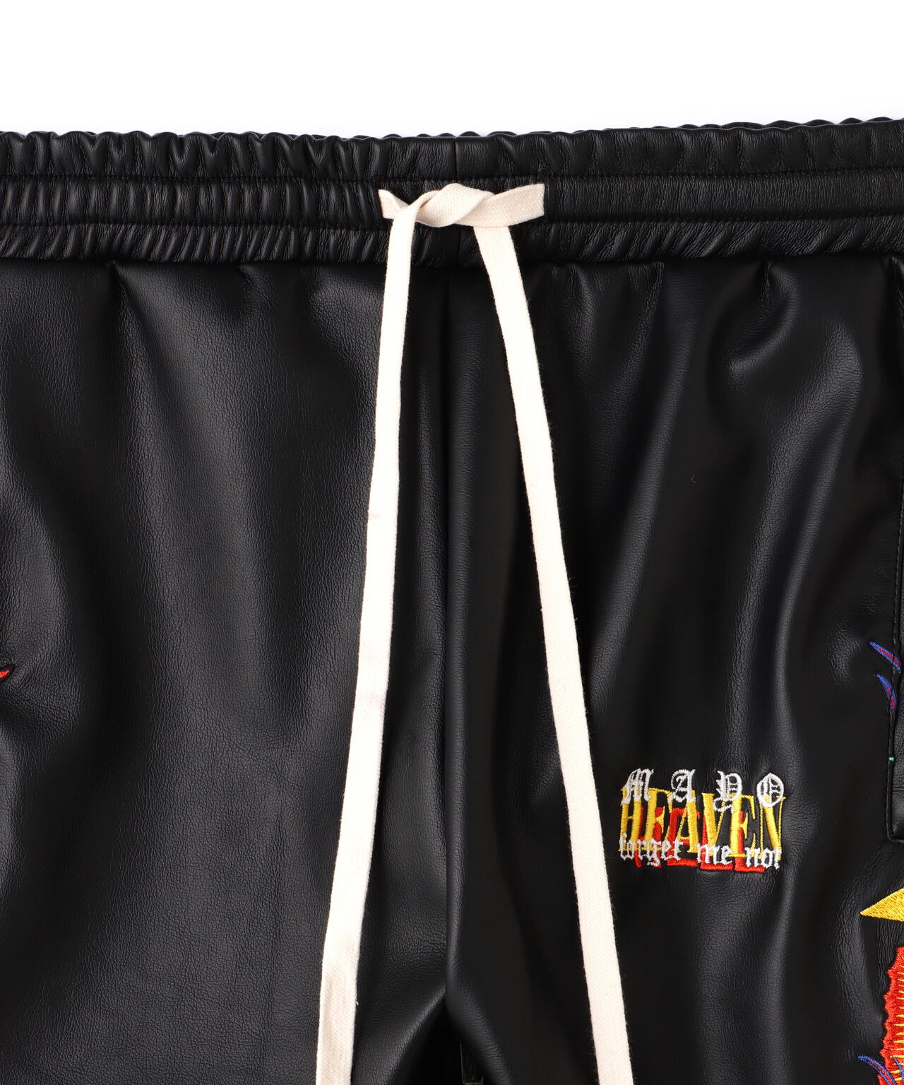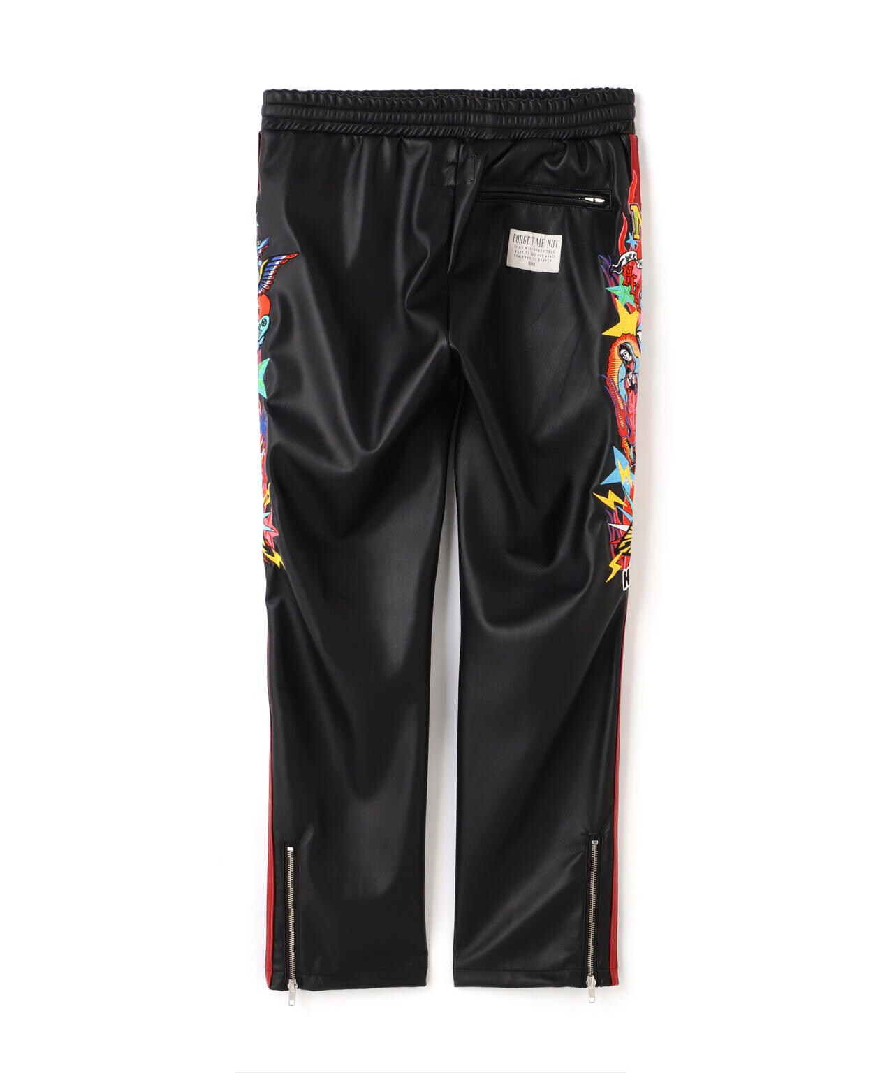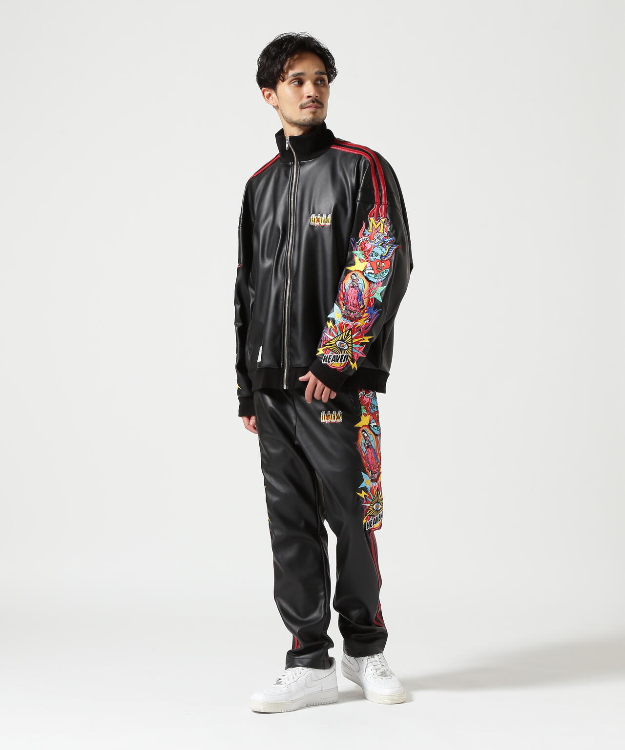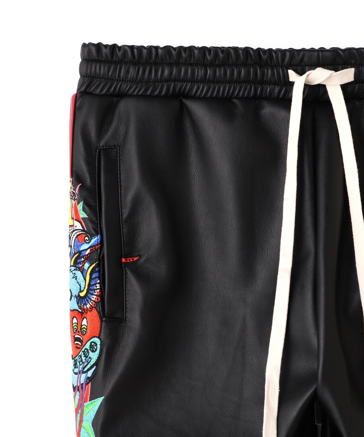 サイドのライン上に配置されたワッペンが存在感あるPUレザーの1着。