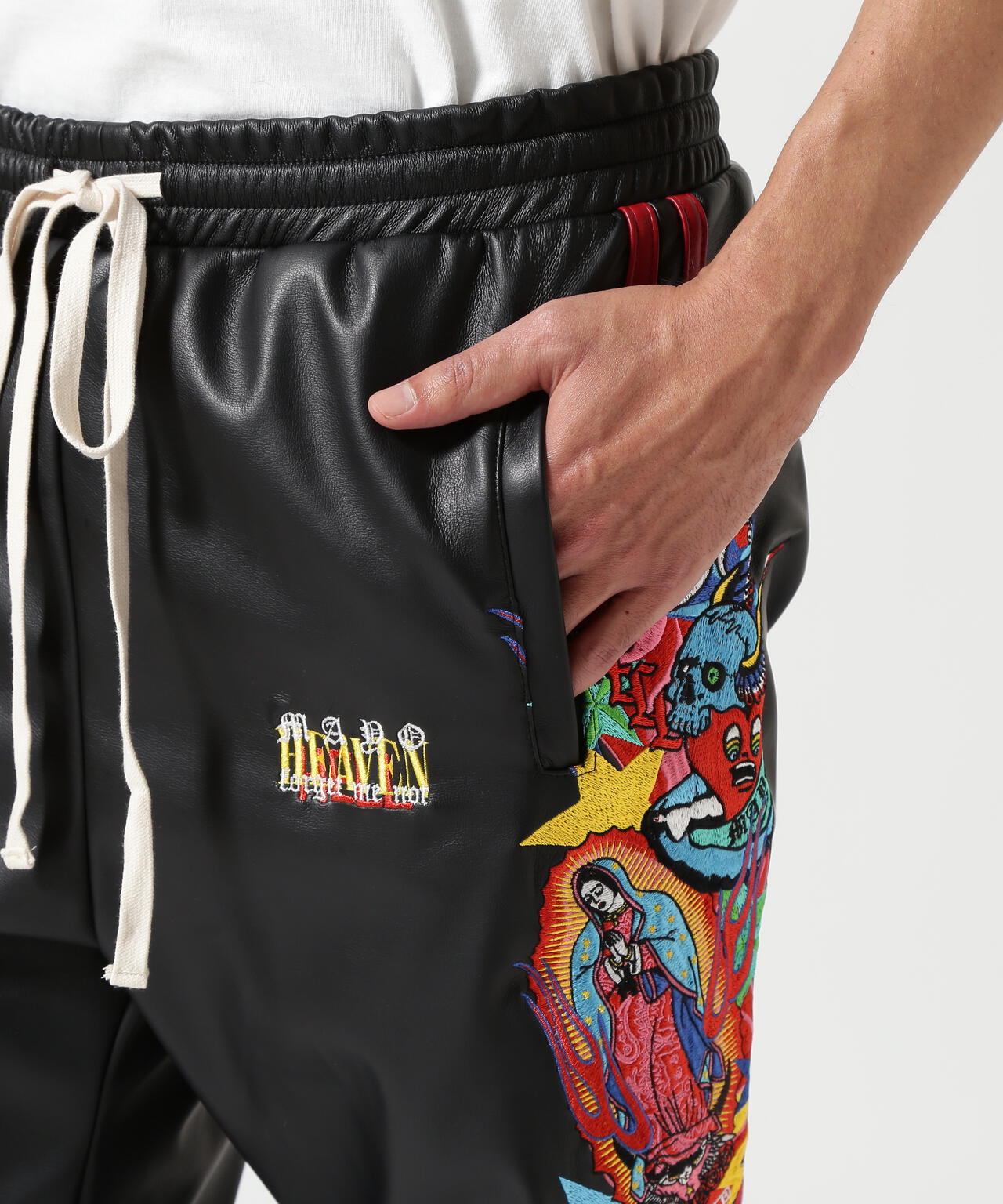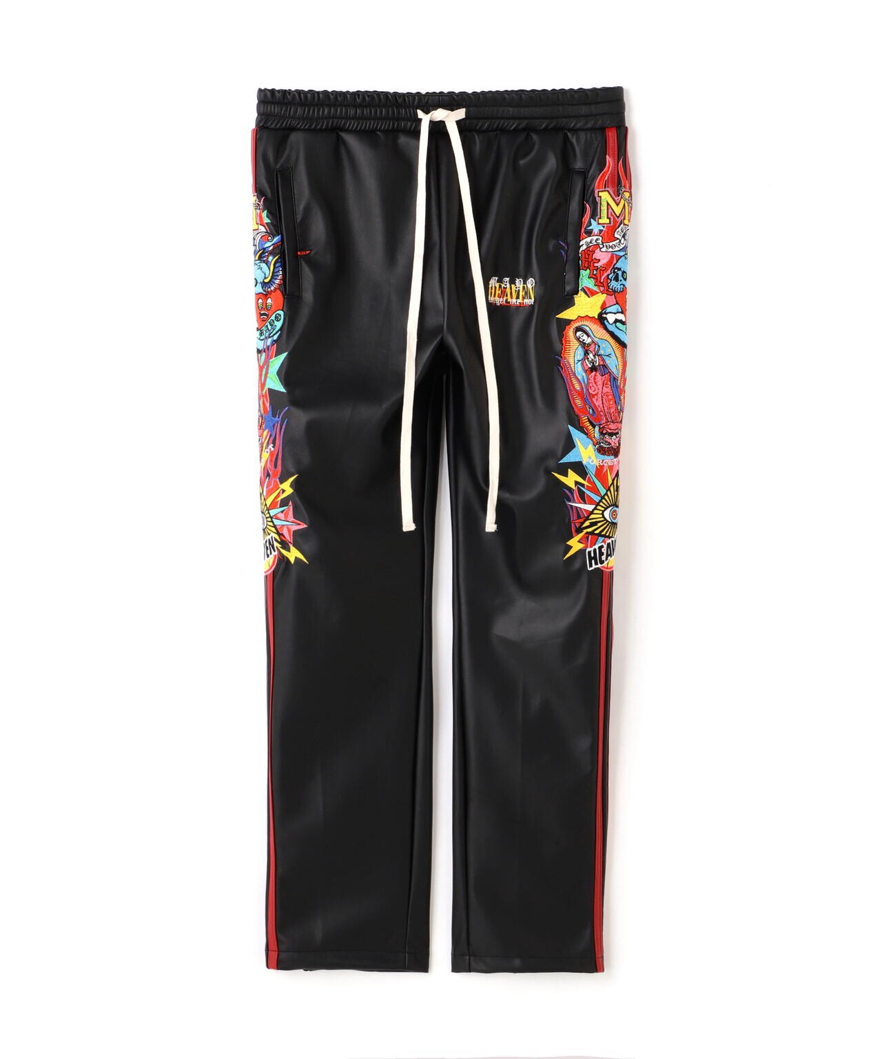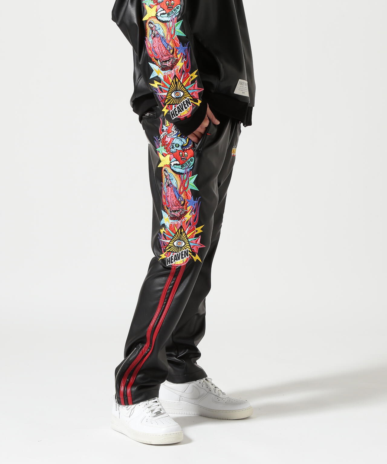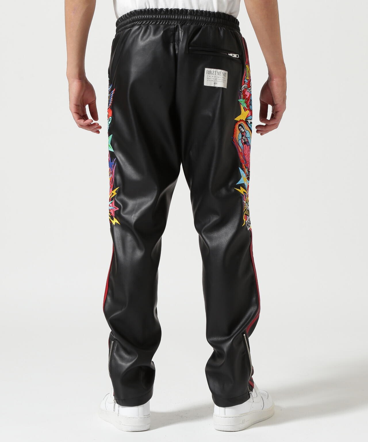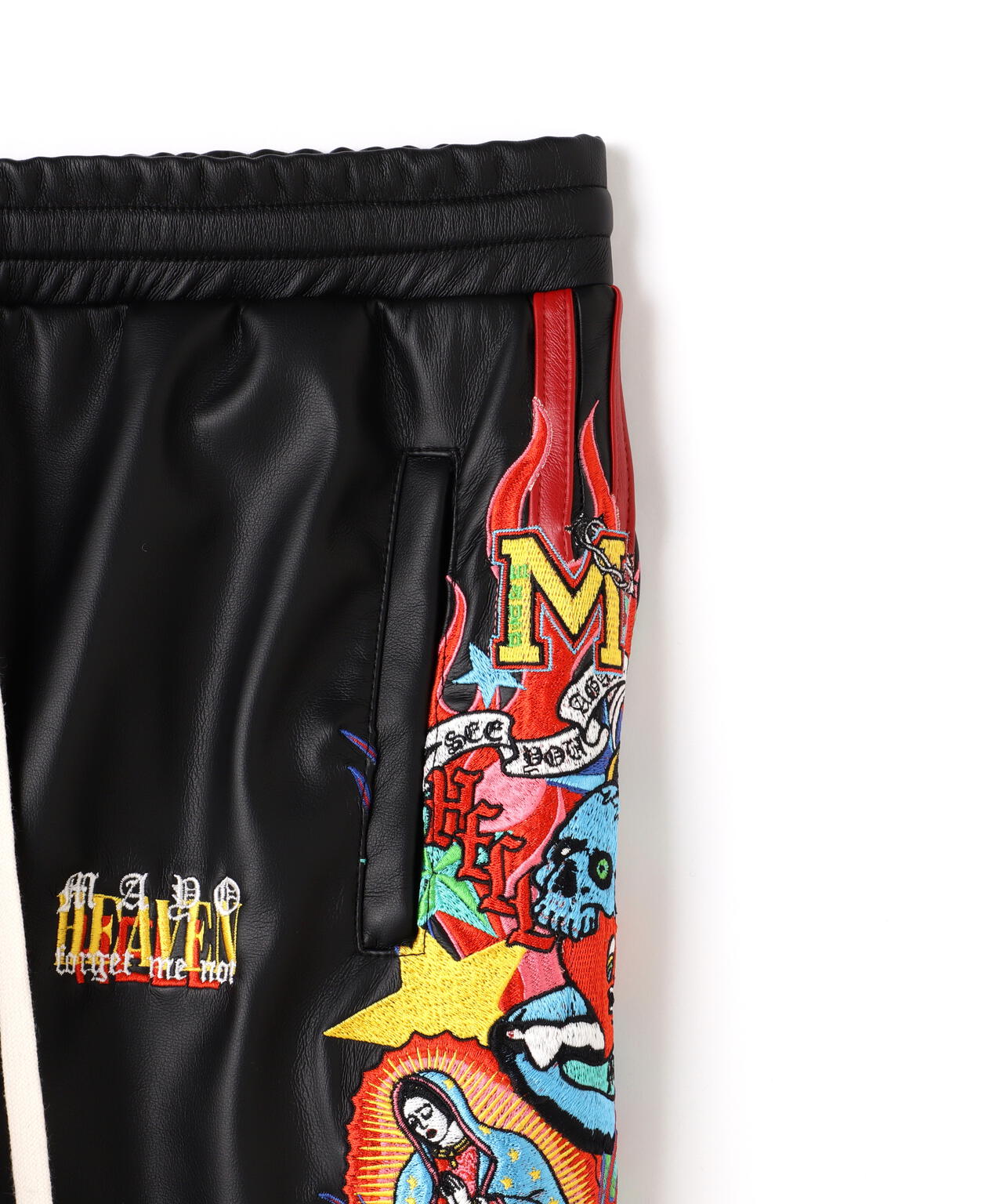 サイドのライン上に配置されたワッペンが存在感あるPUレザーの1着。