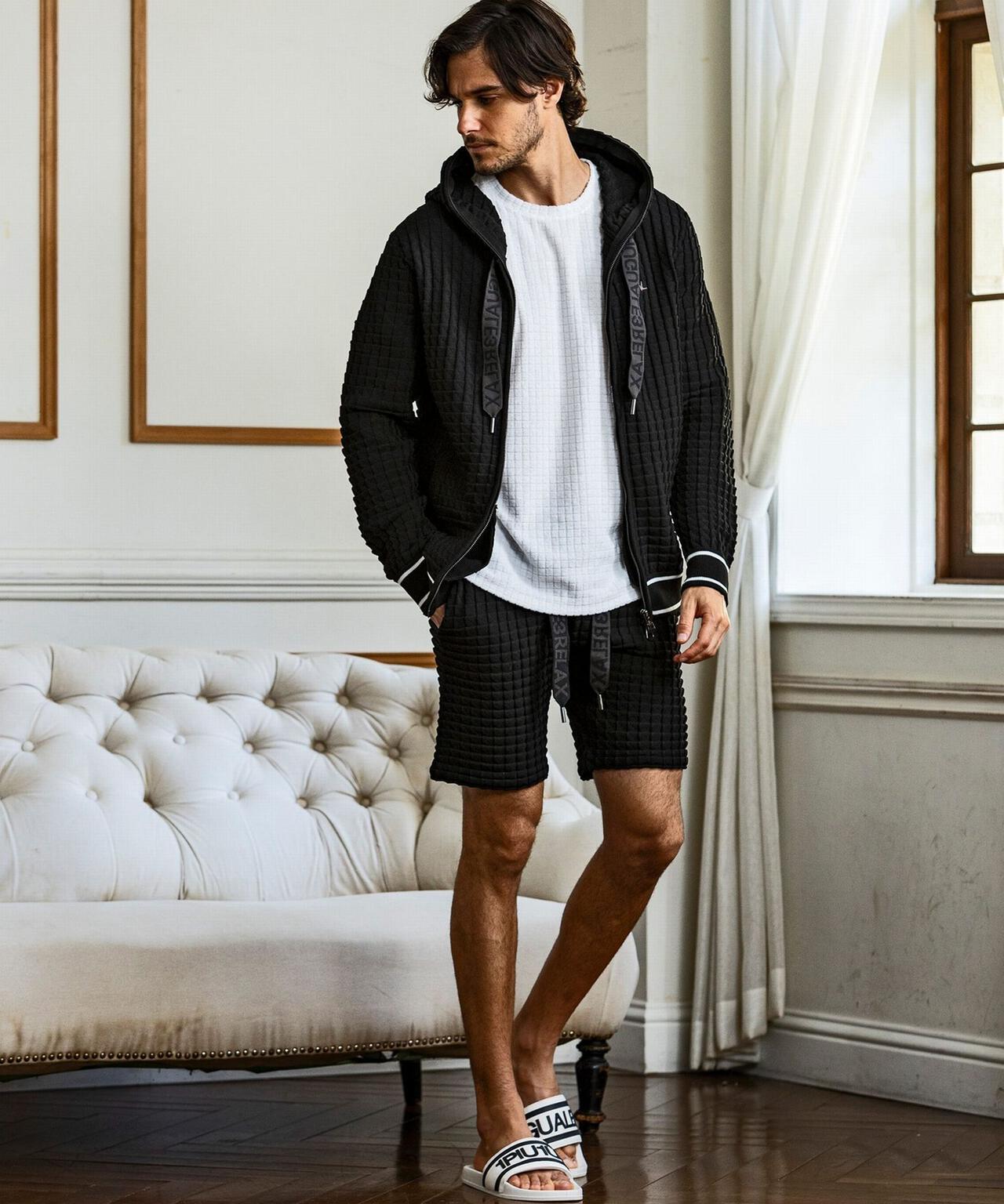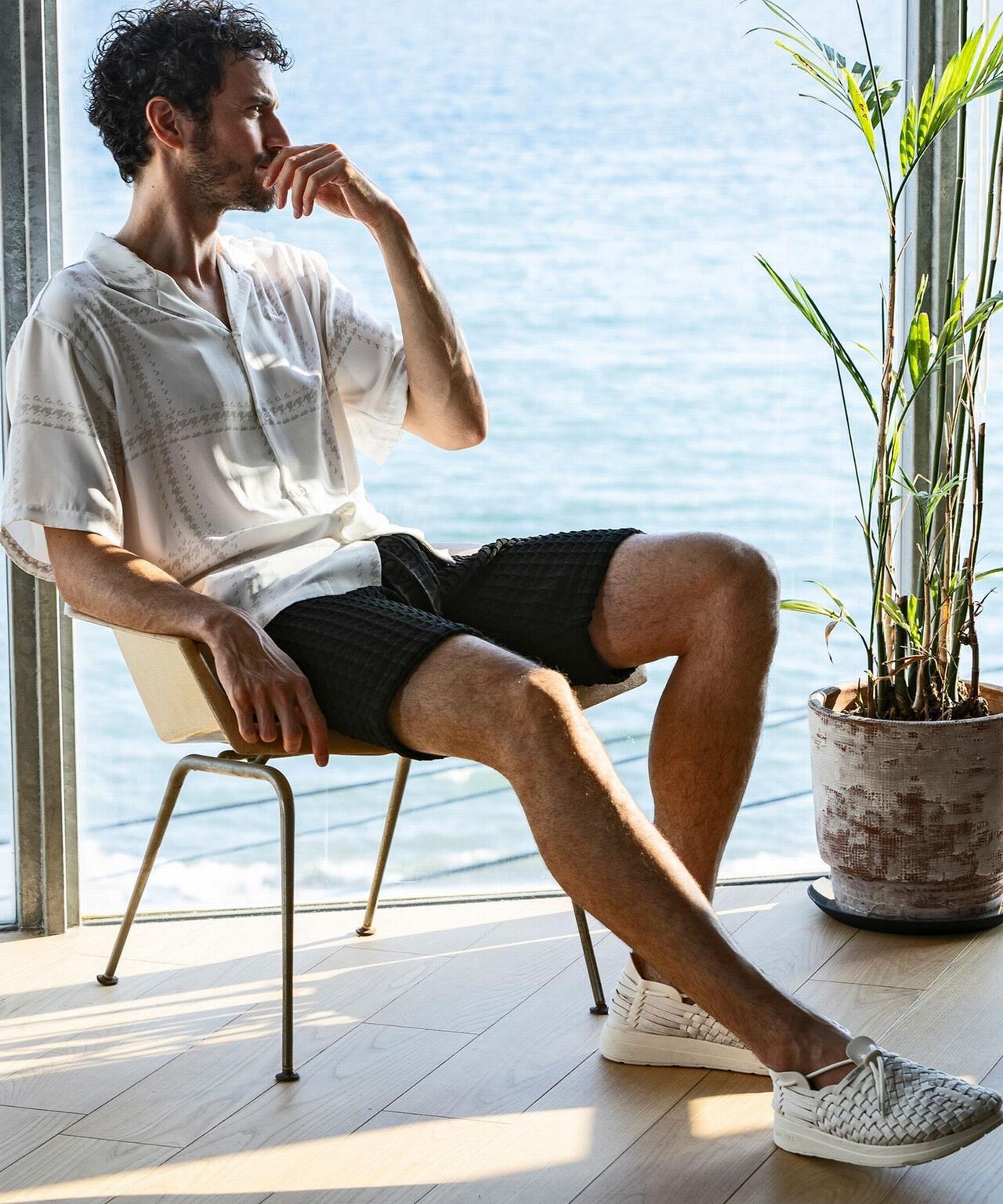 今期は新たにスクエア調に糸を膨らませて格子状に凹凸を出した柔らかな表面感により上質なタオルのような優しい肌触りを形成。