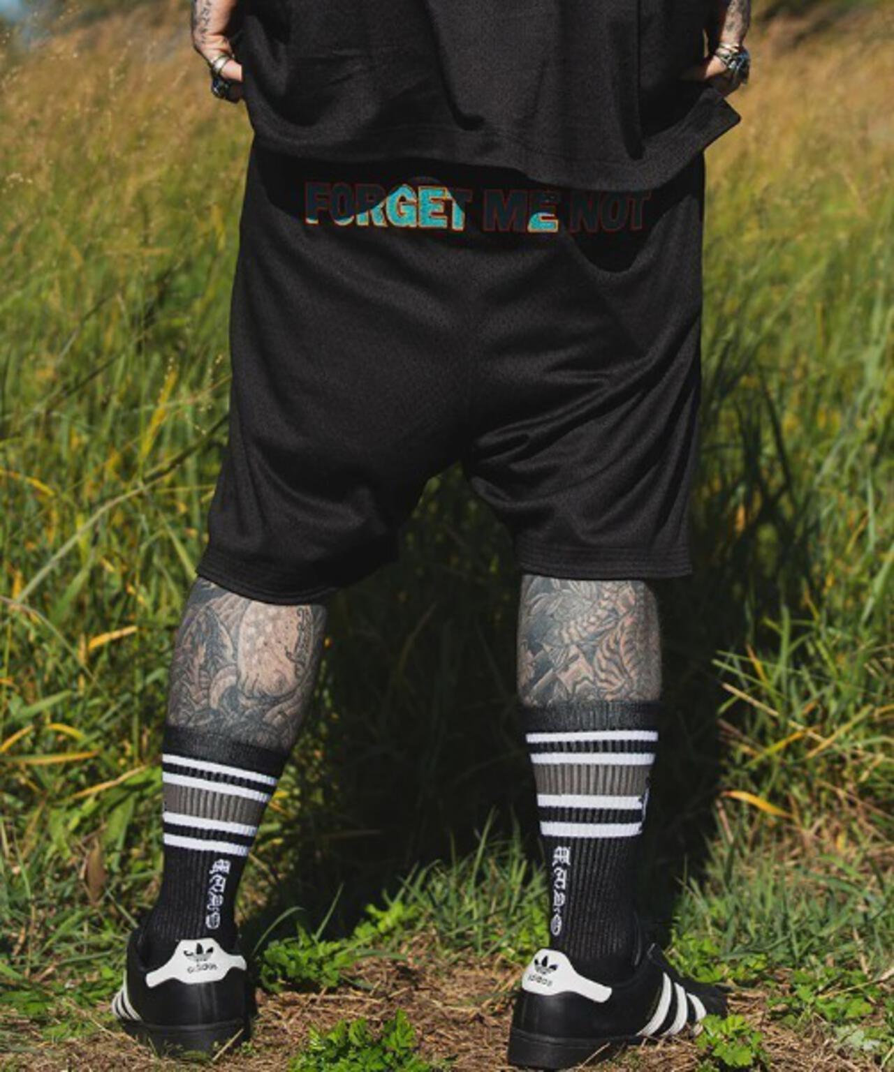 フロントの刺繍がインパクトのあるメッシュゲームショーツ。