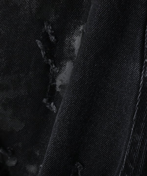 オーバーサイズデニムをベースに部分的にコーティングを施し、ダメージや加工を繰り返す事で、ヴィンテージの様な風合いに仕上げたショーツです。