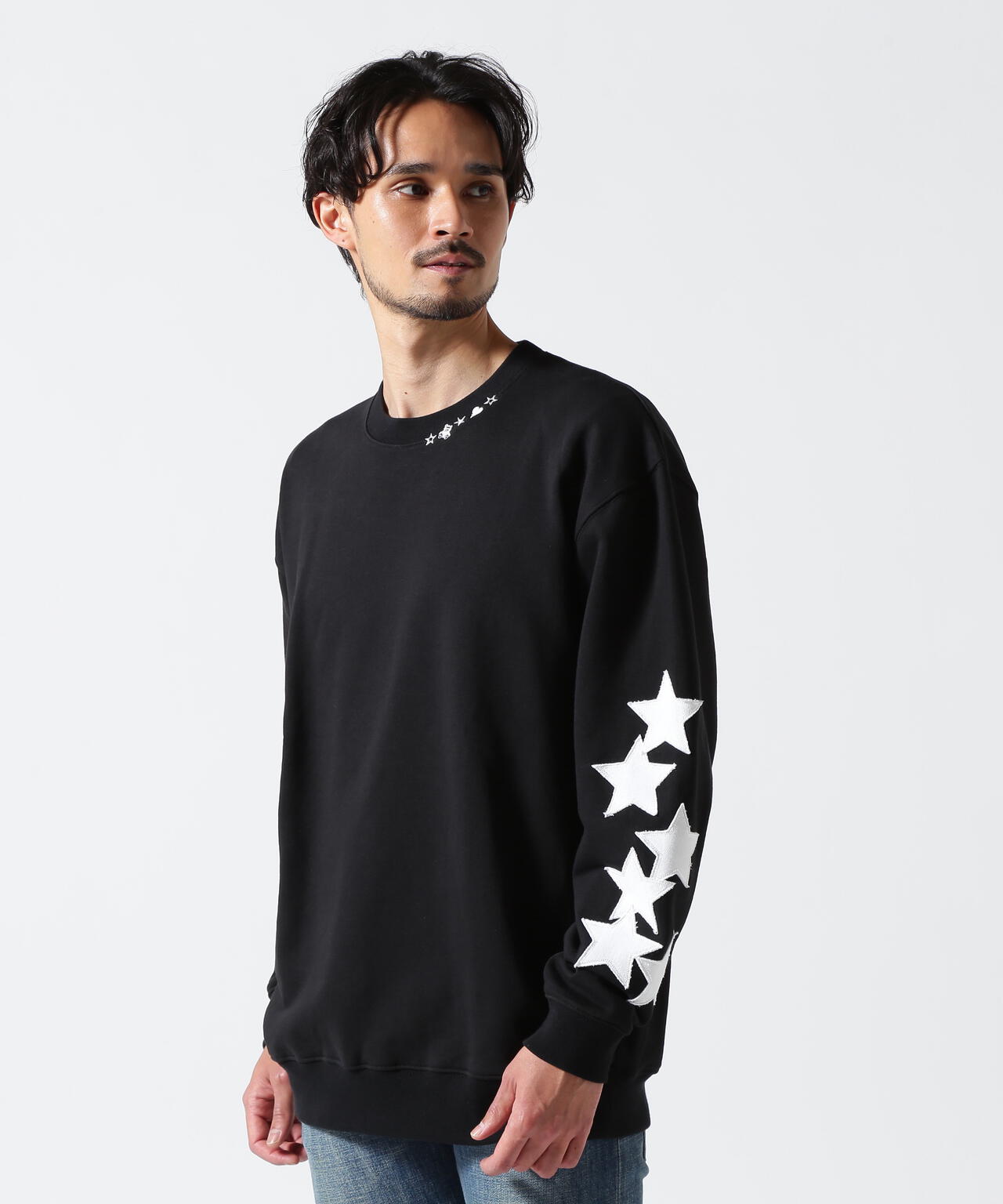 STUD MUFFIN/スタッドマフィン/裏毛パイル カットオフスターパッチワークスエットシャツ