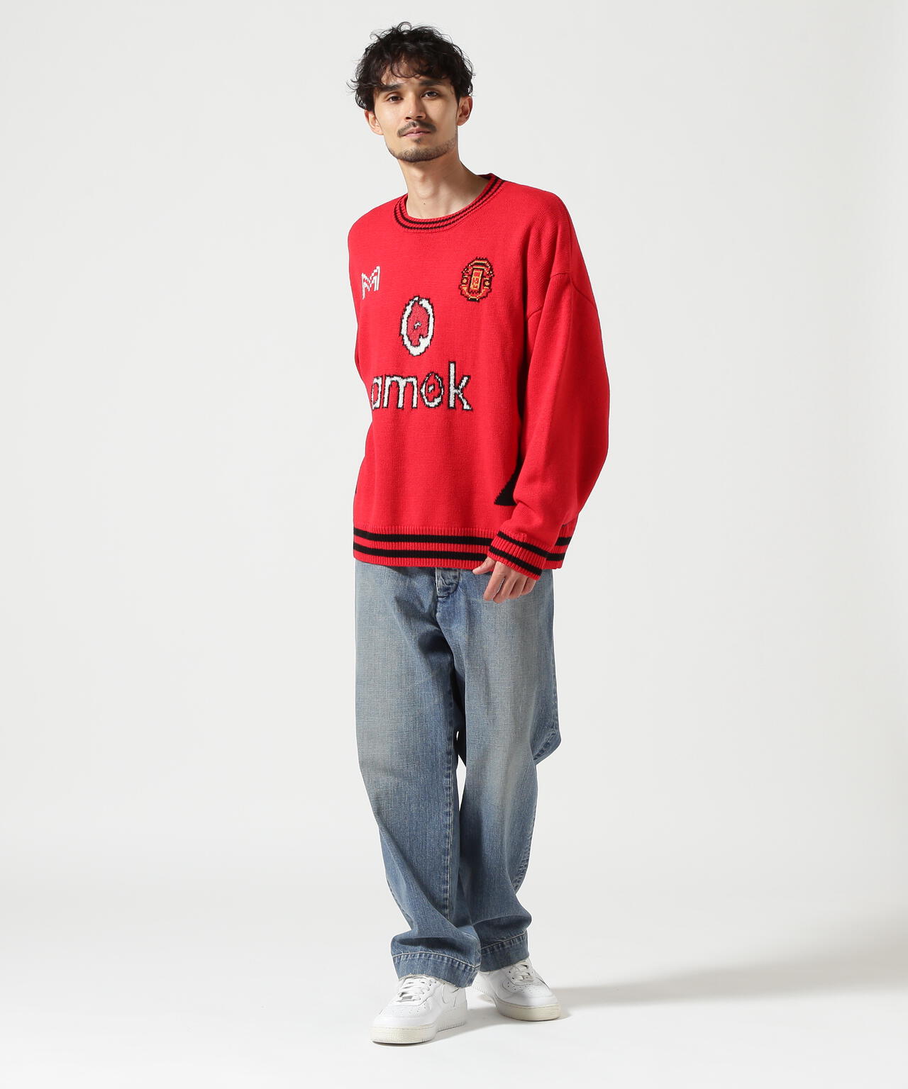 サッカーユニフォームのデザインモチーフをニットで作製して頂きました。