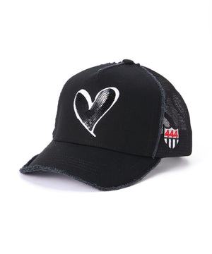 バックのアジャスター上には刺繍でブランドロゴとハートが施され、細部にまでこだわりが感じられます。