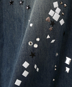 ラインストーンの装飾が目を惹くデニムパンツ。
