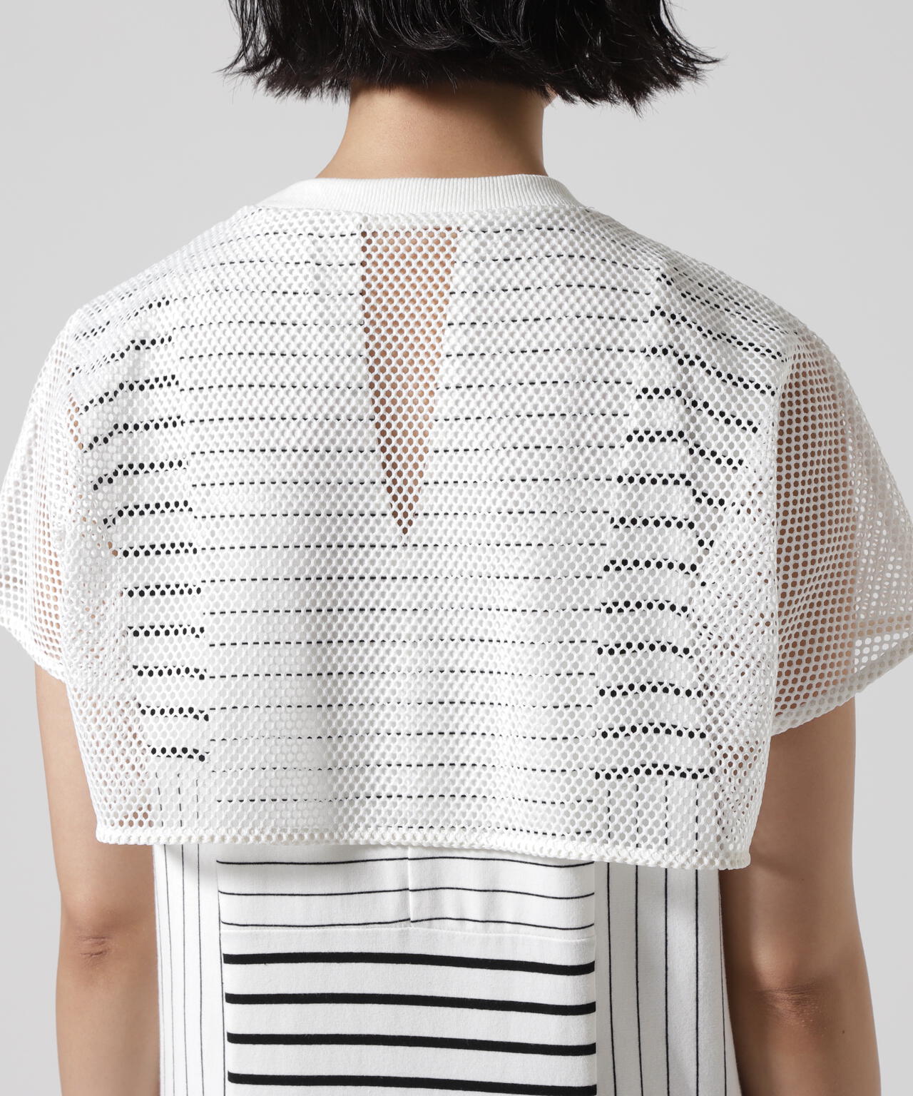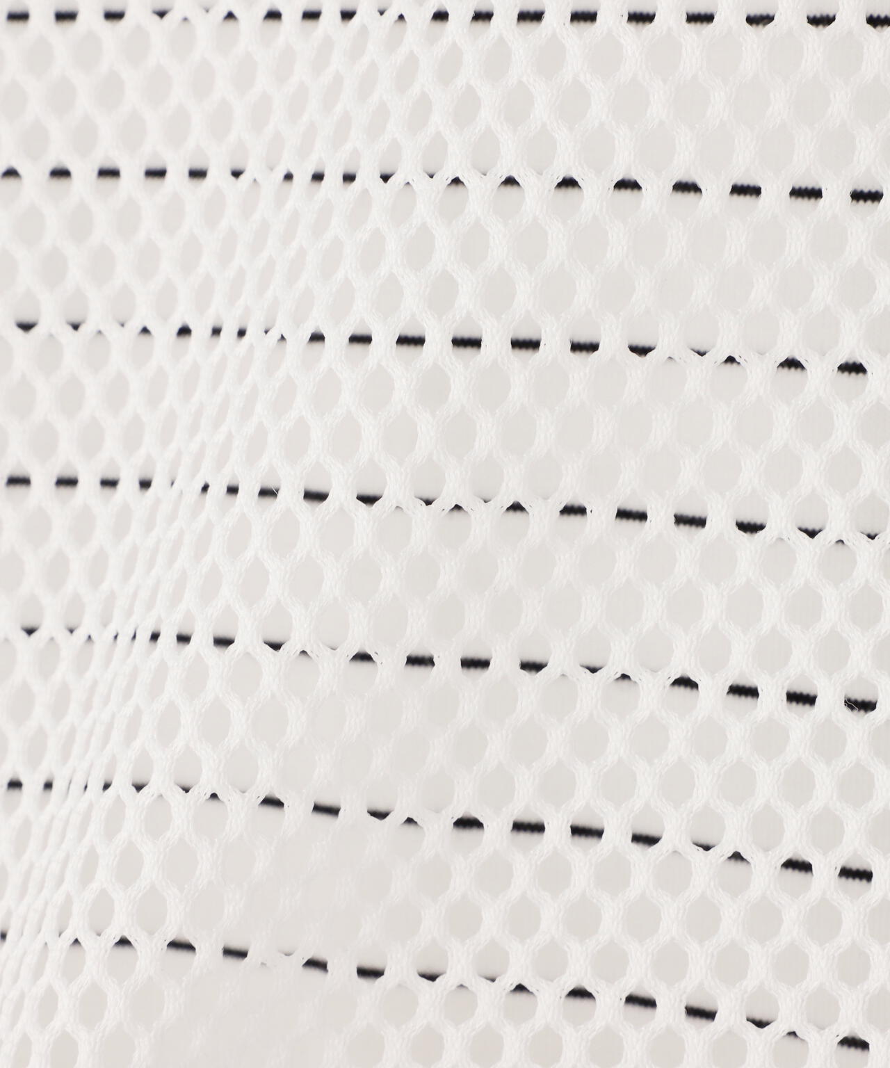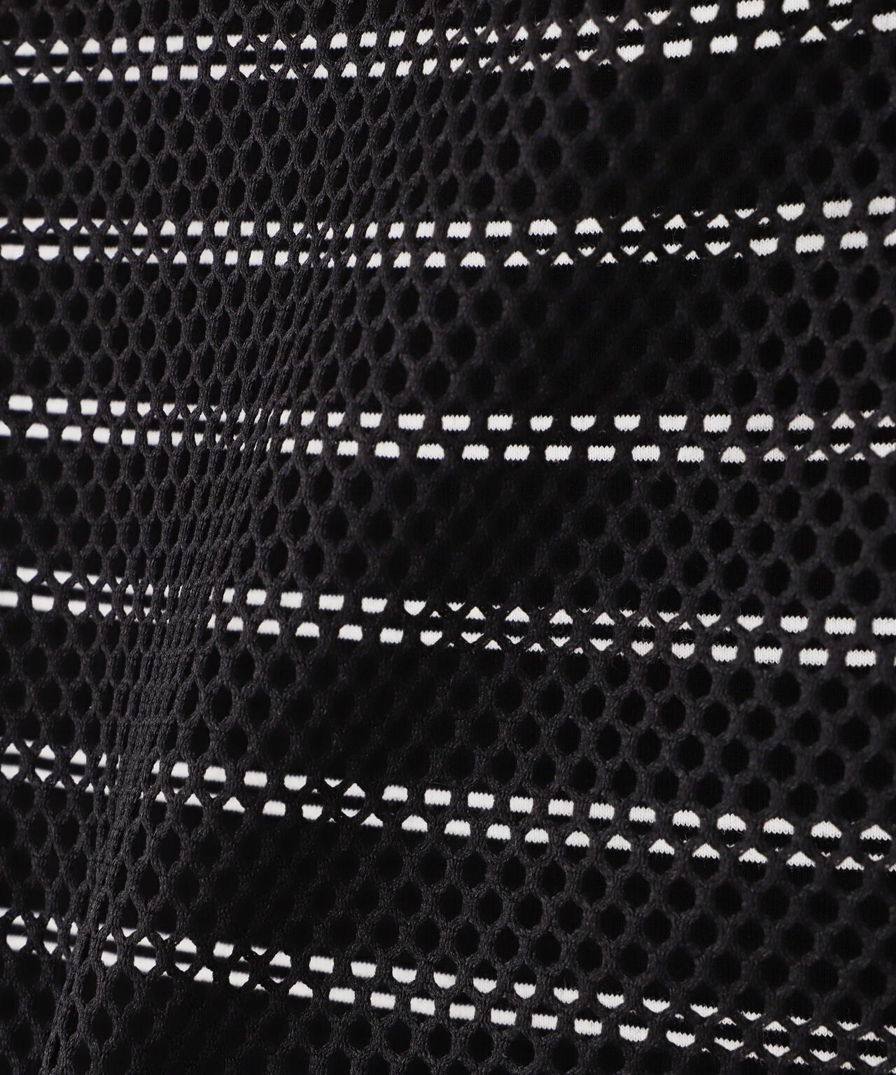 気になる二の腕周りをカバーできるようアームホールのカーブにもこだわり、ケープ風のメッシュパーツはアクセントになりながら、体型カバーもしてくれる優れもの。
