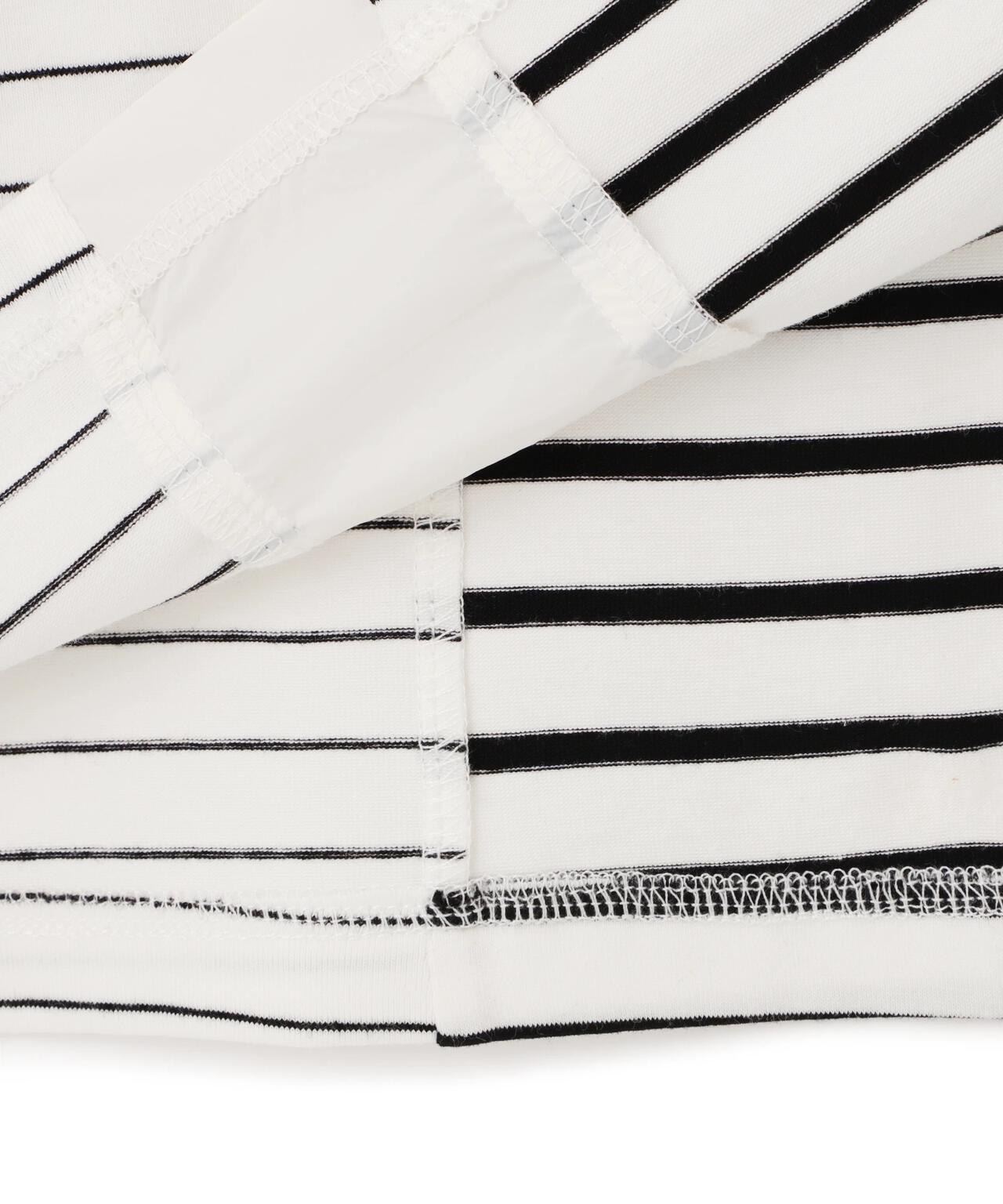 ウエスト部分のパーツは生地をストライプに使用し、縦長効果も期待できる、計算されたデザイン。