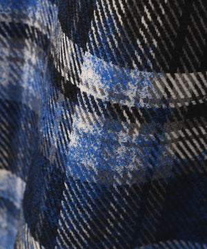 コットン&ポリエステルで素材感がしっかりしたチェックシャツ。