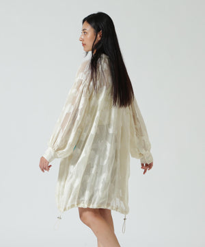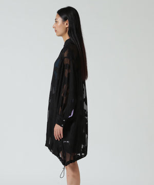 フロントを閉じてワンピース風に着こなしたり、羽織りとしてレイヤードスタイルを楽しんだりと、1枚で幅広いコーディネートが可能な一着です。